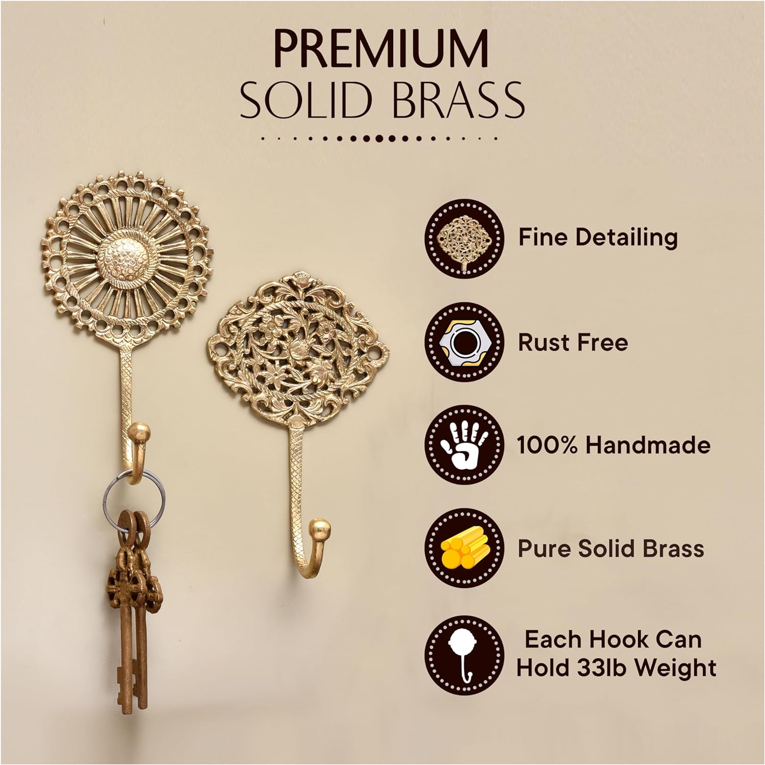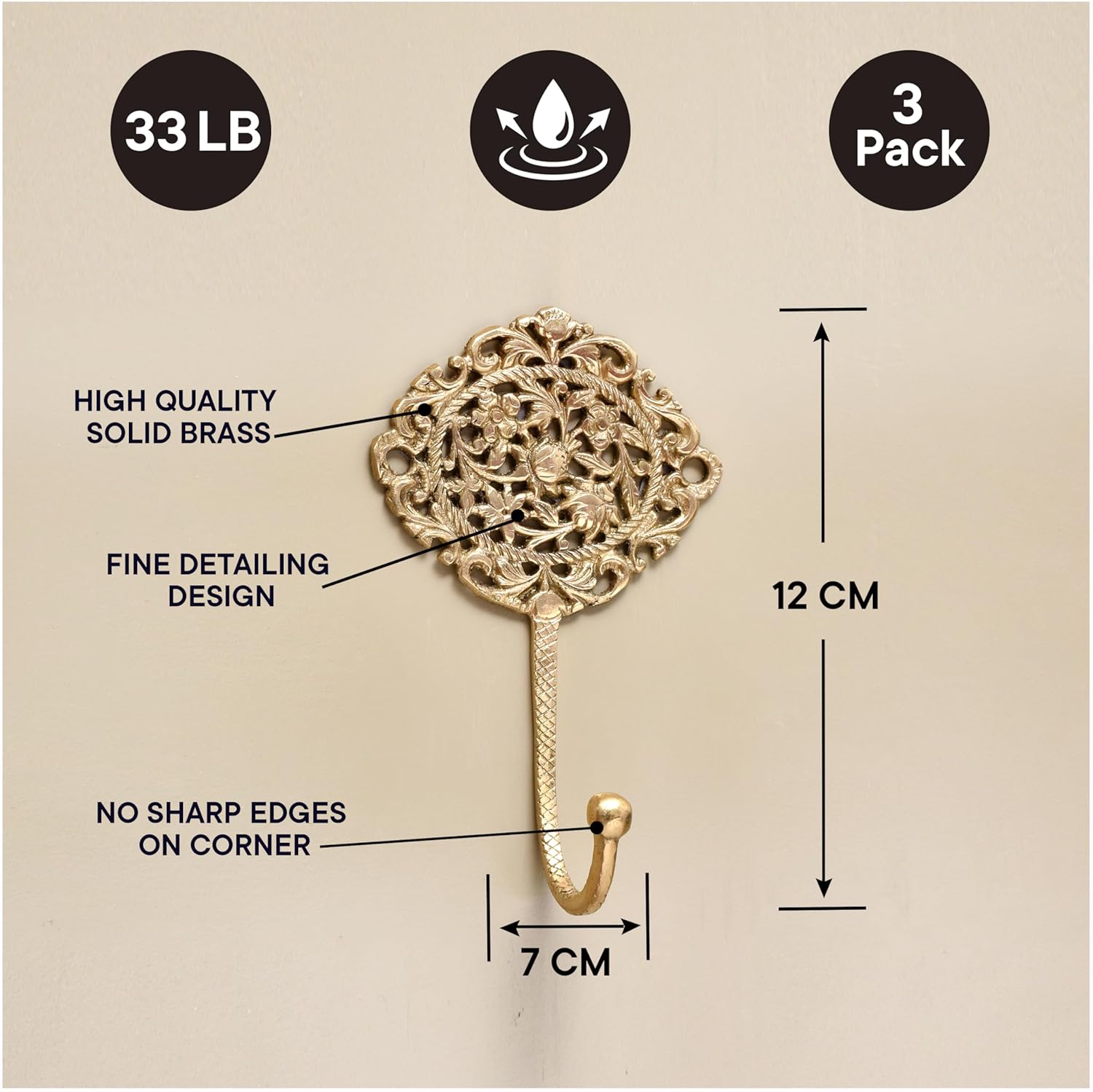 Made from solid brass, these hooks are built to last and can easily hold a variety of items, making them both a practical and stylish addition to your home. Their sturdy design ensures that they will provide reliable use for years to come.