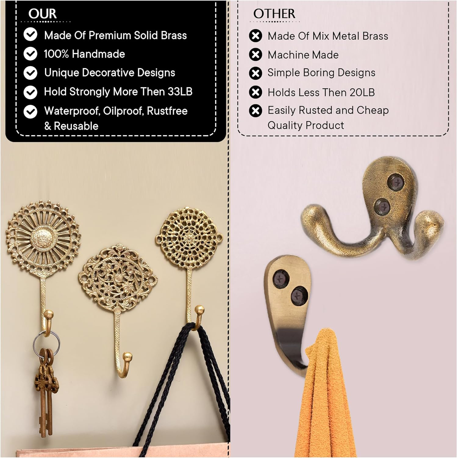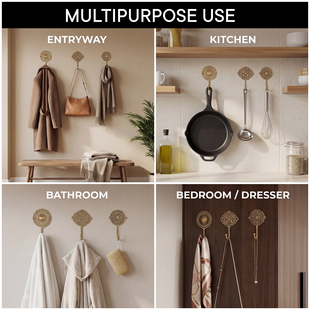 Whether in the hallway, entryway, bathroom, or even the bedroom, these decorative hooks blend seamlessly into your home’s décor. They add functional charm, making it easier to keep things organized while elevating the space’s aesthetic.