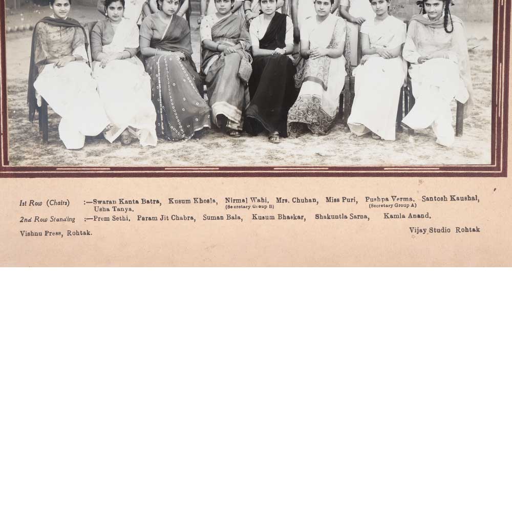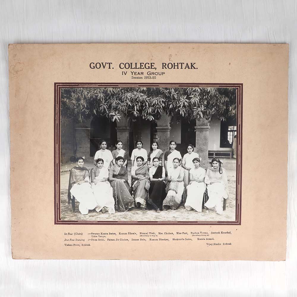 Step back in time with this one-of-a-kind vintage photograph capturing the IV Year Group at Government College in Rohtak, India. This rare black and white image immortalizes the graduating class of 1953-55. This is a piece of history you can hold in your hands. The happy, youthful faces of these graduates give you a window into student life in the 1950s. Their neat attire and optimistic smiles speak of a generation filled with hope and promise. This vintage photograph would make a thoughtful gift for a Government College alumnus. It would also be perfect for decorating an office, library, or classroom with a nod to the past. The excellent contrast and clarity of the image allow you to zoom in and appreciate each individual face.