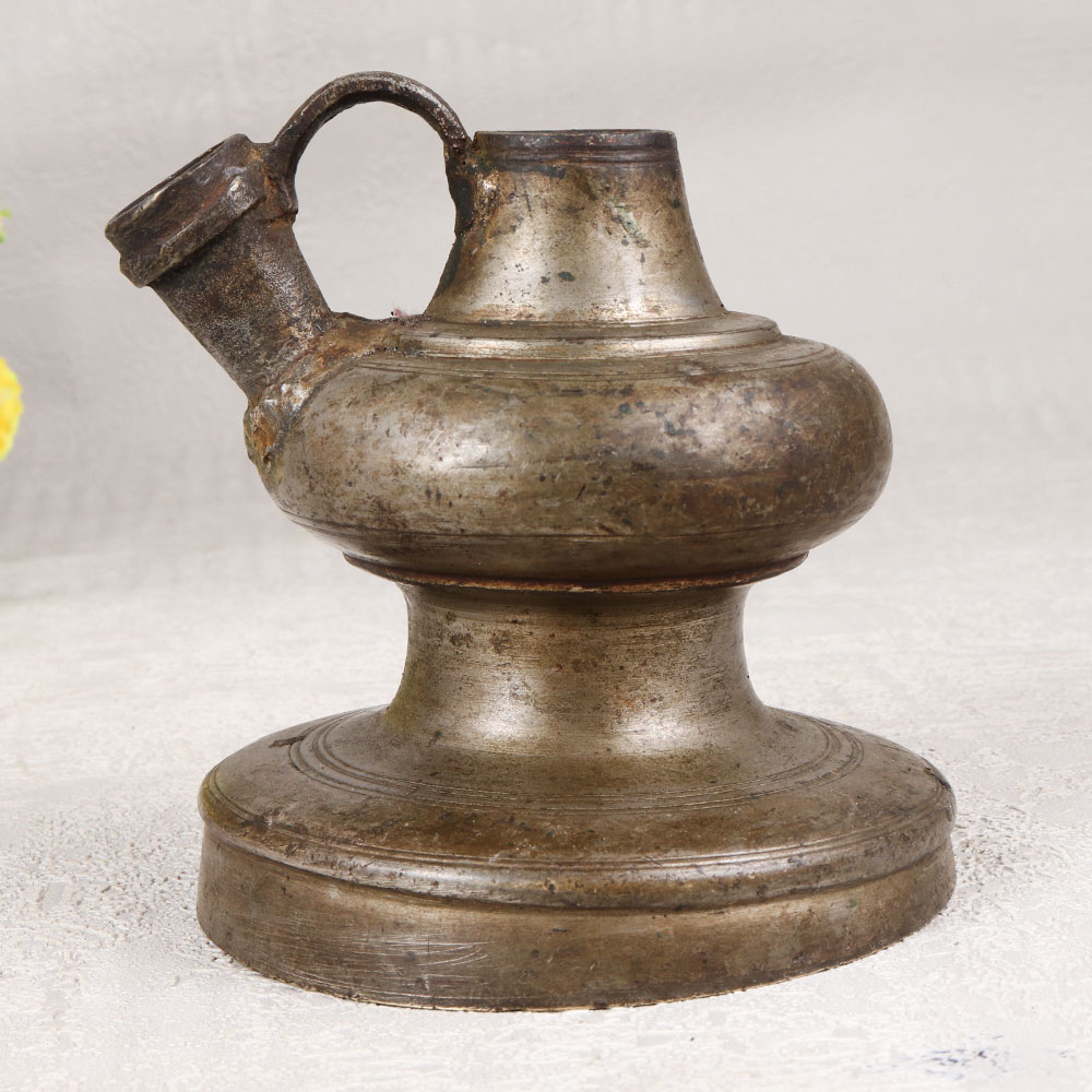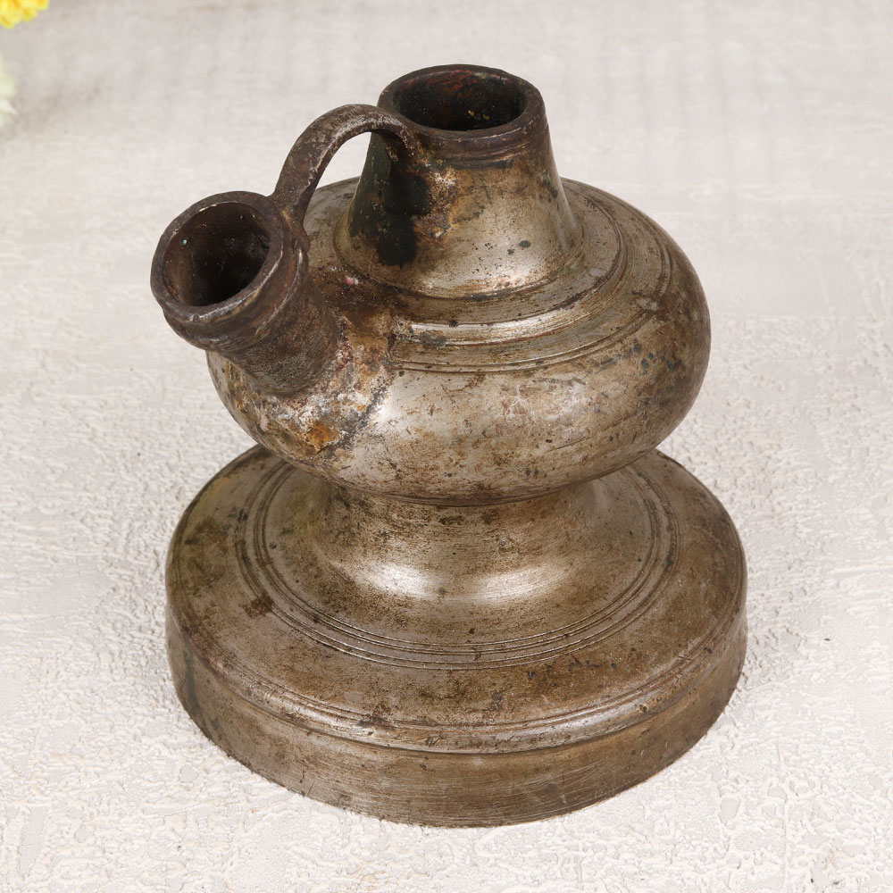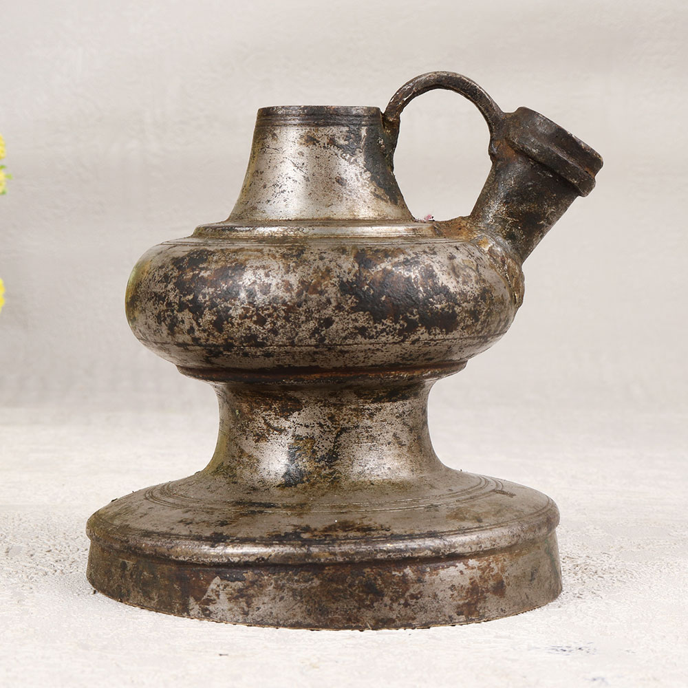 Immerse yourself in the timeless allure of this exquisite Vintage Brass Hookah Base that is a masterpiece meticulously crafted by highly talented Indian artisans. Handmade from high-quality brass, the base boasts a captivating antique gray finish that adds a touch of vintage elegance to any space. The surface is adorned with intricate engravings, showcasing the artistry and craftsmanship that define this unique piece. Versatile in its charm, this hookah base transcends its traditional use and emerges as a stunning indoor flower pot, providing a distinctive and opulent touch to your home, office, restaurant, hotel, or cafe. Its regal presence transforms any setting into a haven of sophistication and cultural richness. Beyond mere decor, this exceptional piece is an ideal addition to any vintage collection, a testament to the enduring beauty of Indian craftsmanship. Celebrate special moments with your family, friends or relatives by gifting them this extraordinary hookah base on auspicious occasions or festive gatherings. The combination of historical charm and functional versatility makes this Vintage Brass Hookah Base a cherished heirloom, connecting the past with the present in a celebration of art and tradition.