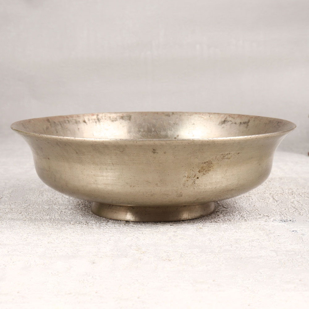 Buy a White Metal Bowl online that is a versatile and elegant piece handcrafted by highly skilled Indian artisans. This unique bowl is adorned with an antique gray finish and seamlessly blends traditional craftsmanship with modern aesthetics. Made from high-quality white metal, it serves as an ideal flower pot or a divine bathtub for gods in temples, adding a touch of grace to any setting. The bowl's timeless design makes it a versatile decor item suitable for various spaces, including homes, offices, restaurants, hotels, and cafes. Its antique gray finish not only enhances its aesthetic appeal but also imparts a vintage charm, making it a delightful addition to any collection of classic artefacts. Beyond its decorative value, this white metal bowl holds sentimental significance as a thoughtful gift for your family, friends or relatives during special, festive, or auspicious occasions. Embrace the artistry and cultural richness embedded in every curve and detail of this handmade masterpiece. Elevate your surroundings with the White Metal Bowl, a testament to the craftsmanship and tradition of Indian artistry, marking a year of celebration for this timeless creation.