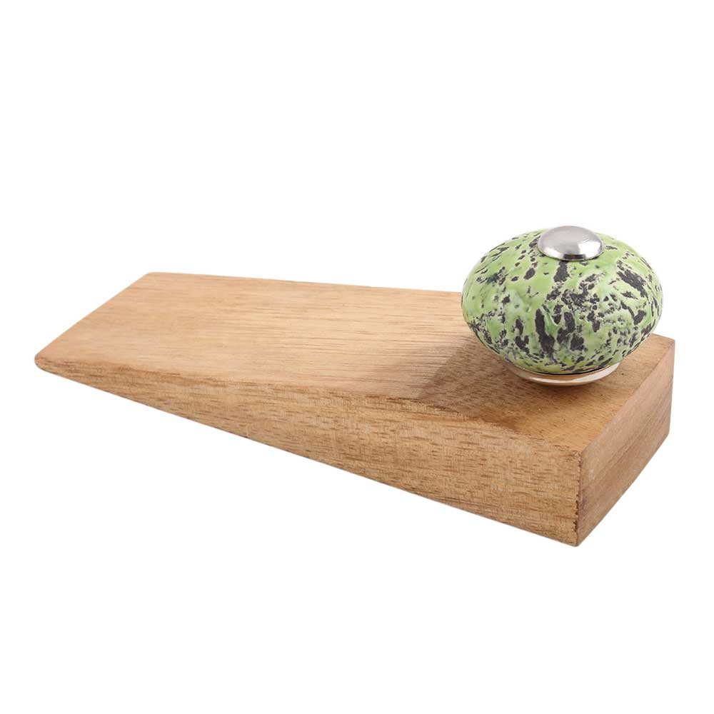 Handmade Ceramic and Wooden Door Stopper.Wooden Door Stopper with a Ceramic Knob to Carry it Easily. This Wooden Door Stopper has Glue Dots under it to Ensure that it does not Slip. It is Handmade by the Craftsmen of India and this Innovative Door Stopper won't Disappoint You.