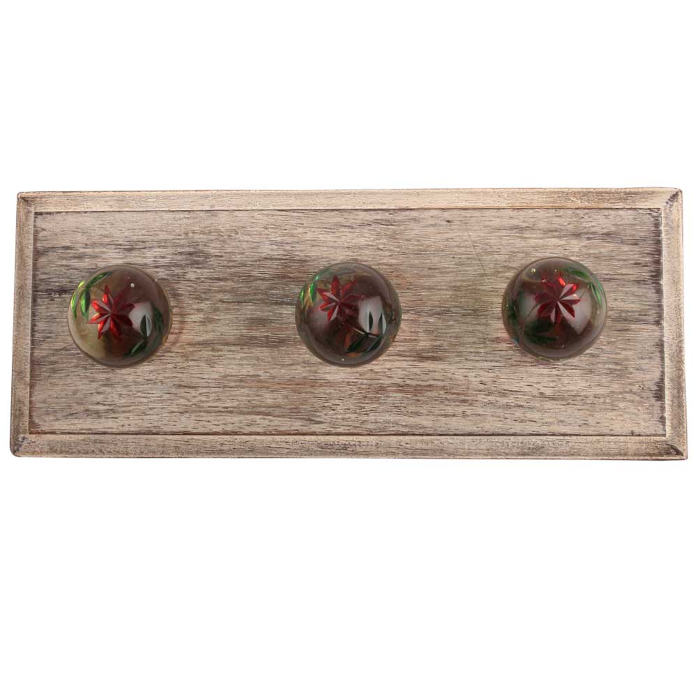 Green And Red Star Cut Glass Wooden Hook. A Perfect Complement to the Soft Tone of the Wood are these White Traditional Hat and Coat Hook Made of Genuine Porcelain and Brass. It can be used to Hang Jewelry, Leashes, Towels, Scarves, Light Weight Sweaters, Caps etc.