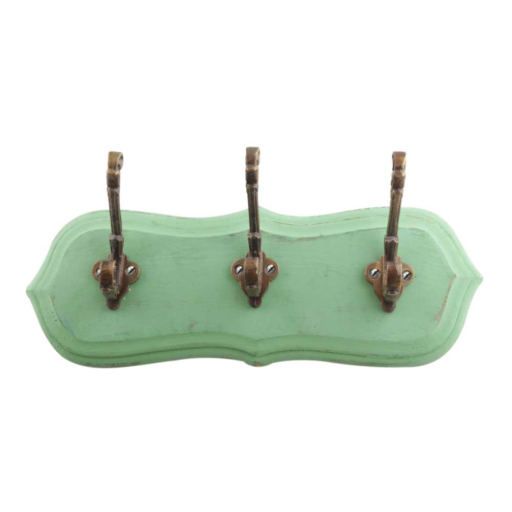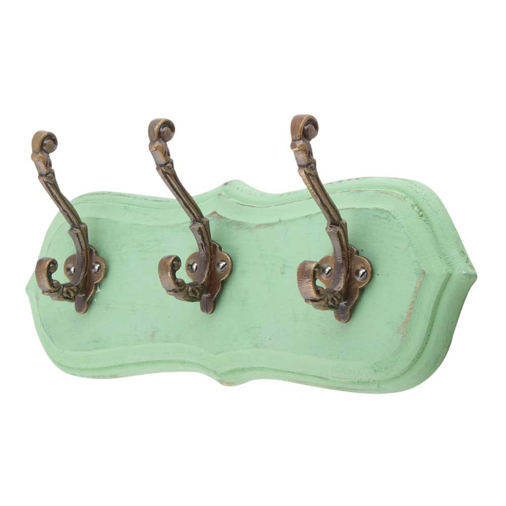 Green Antique Small Wall Wooden Iron Hooks. A Perfect Complement to the Soft Tone of the Wood are these White Traditional Hat & Coat Hook Made of Genuine Porcelain and Brass. It can be use to Hang Jewellery, Leashes, Towels, Scarves, Light Weight Sweaters, Caps Etc.