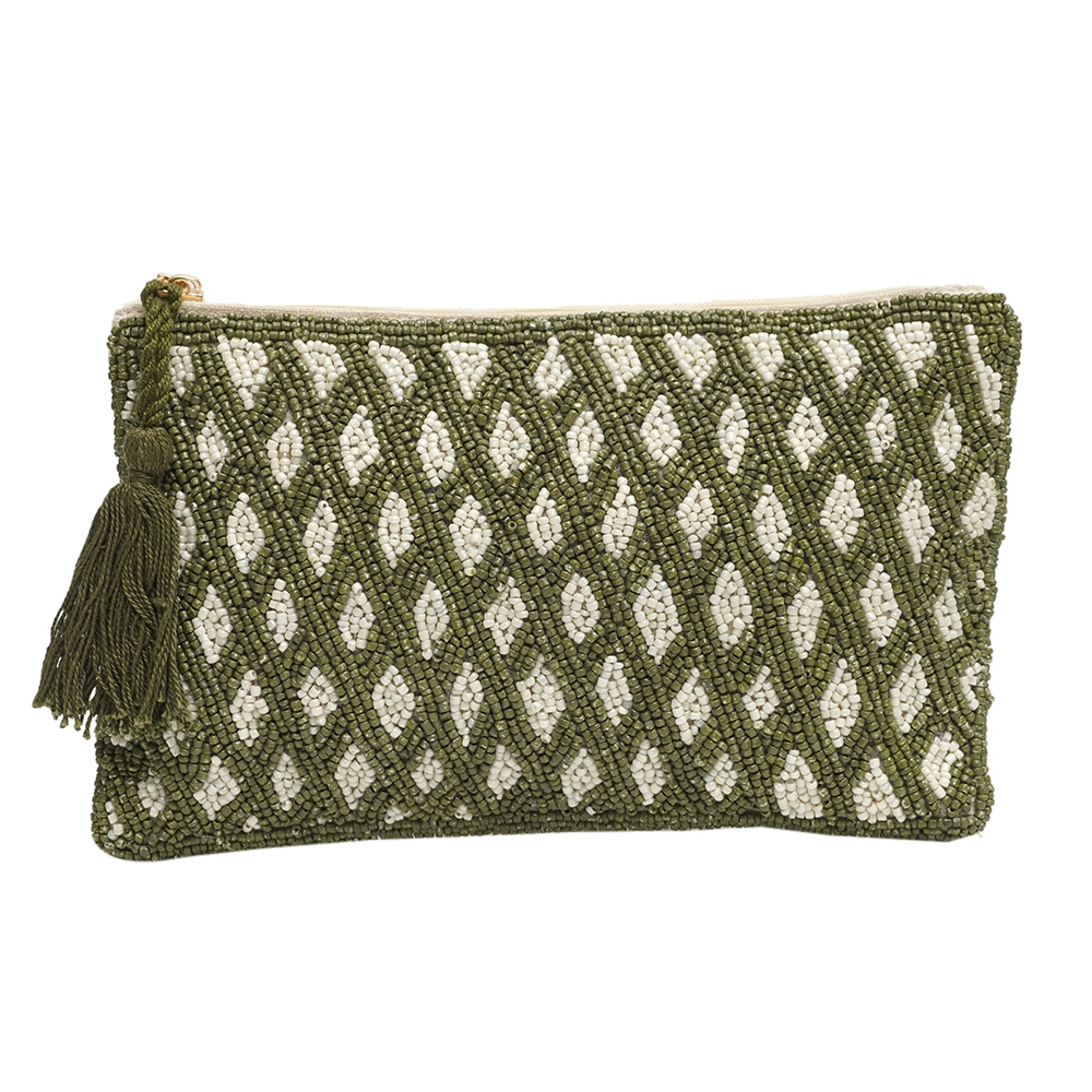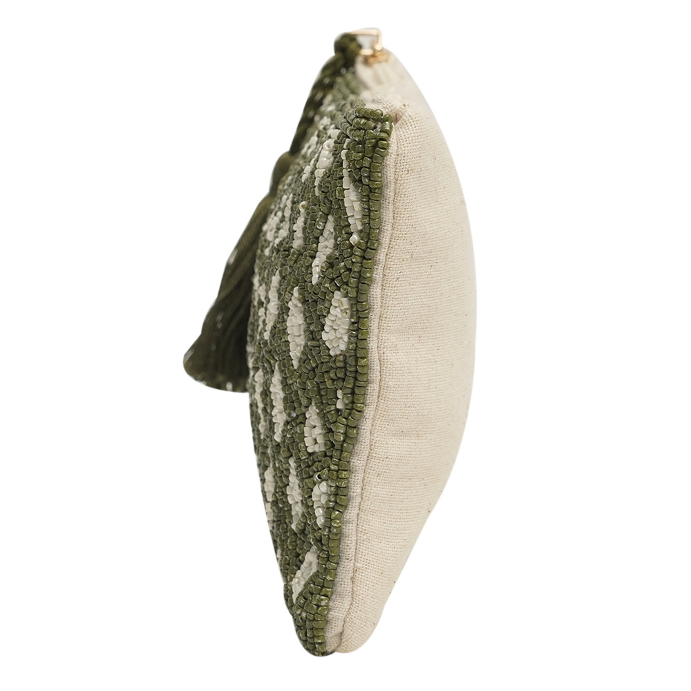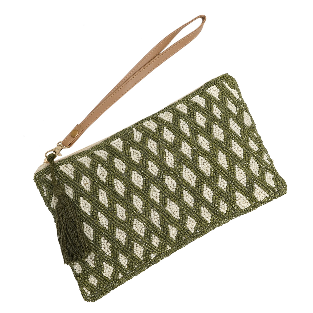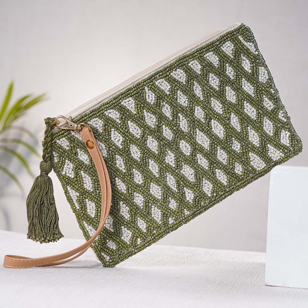 Introducing our stunning clutch handbag, a perfect combination of beauty and functionality. This luxury bag for women is handcrafted by skilled craftsmen with utmost attention to detail, using high-quality cotton material and adorned with beautiful beads and intricate white and green engravings. This small bag for women is not only a fashion statement but also a practical accessory that can be used for office meetings, going out, and traveling. The clutch handbag is spacious enough to fit all your essentials, including your phone, wallet, keys, and makeup, making it a perfect companion for all occasions. This handbag for women is a perfect gift for your family, friends, or relatives. The exquisite design, superior craftsmanship, and premium materials make it a valuable addition to any wardrobe. So, whether you are looking for a handbag for yourself or as a gift, our clutch handbag is a must-have for any fashion-conscious woman.