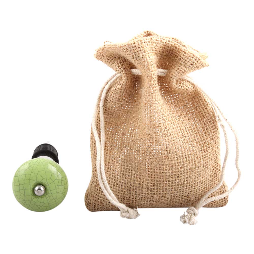 Green And Black Crackle Ceramic Wine Stopper.zinc alloy wine bottle stopper with attractive Jute Bag Packaging.