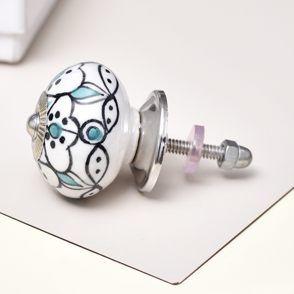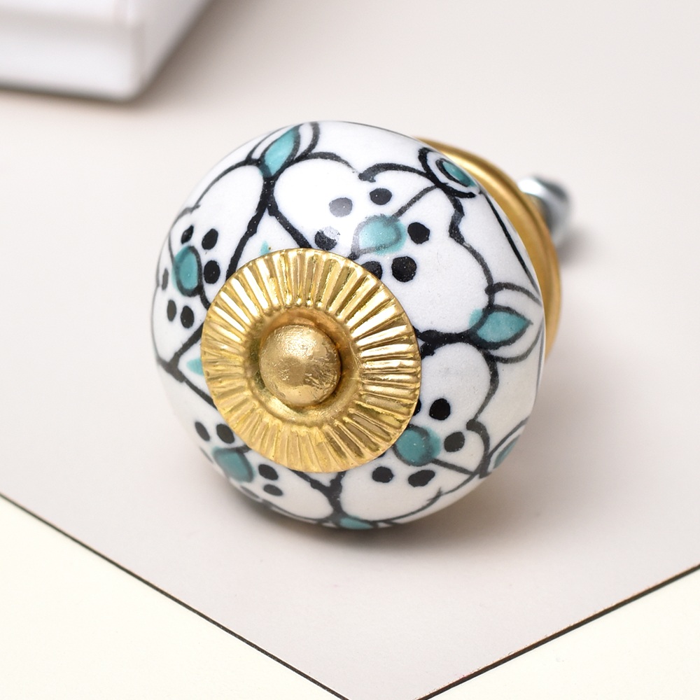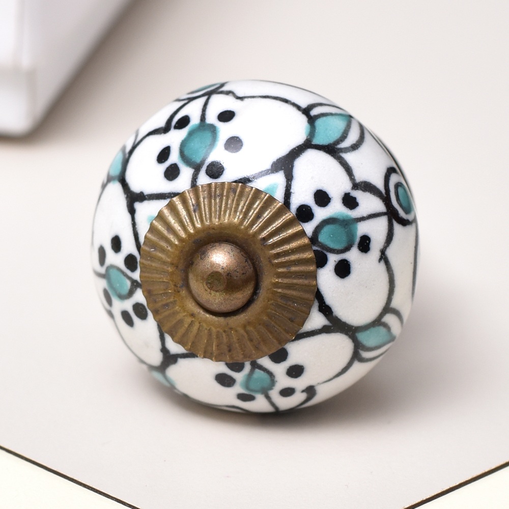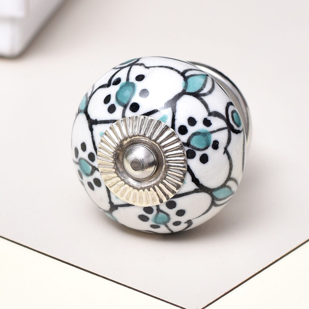 The Green Black Floral Ceramic Knob displays a detailed floral pattern in contrasting green and black shades. This captivating design injects a splash of color and elegance into your furniture, making it a great choice for anyone wanting to add a floral or nature-inspired touch to their home.