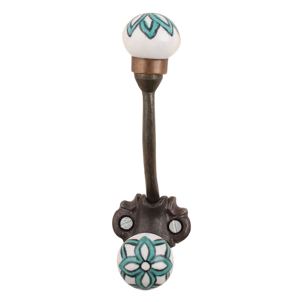 Green Black Floral Iron Hook-Ehg-56. When Put on Wall or Cabinet It Gives A Sturdy Look. This Hook is Strong Enough to Hold Your Cloths, Keys, Tea Cups, Coffee Mugs, Hand Towels Etc.