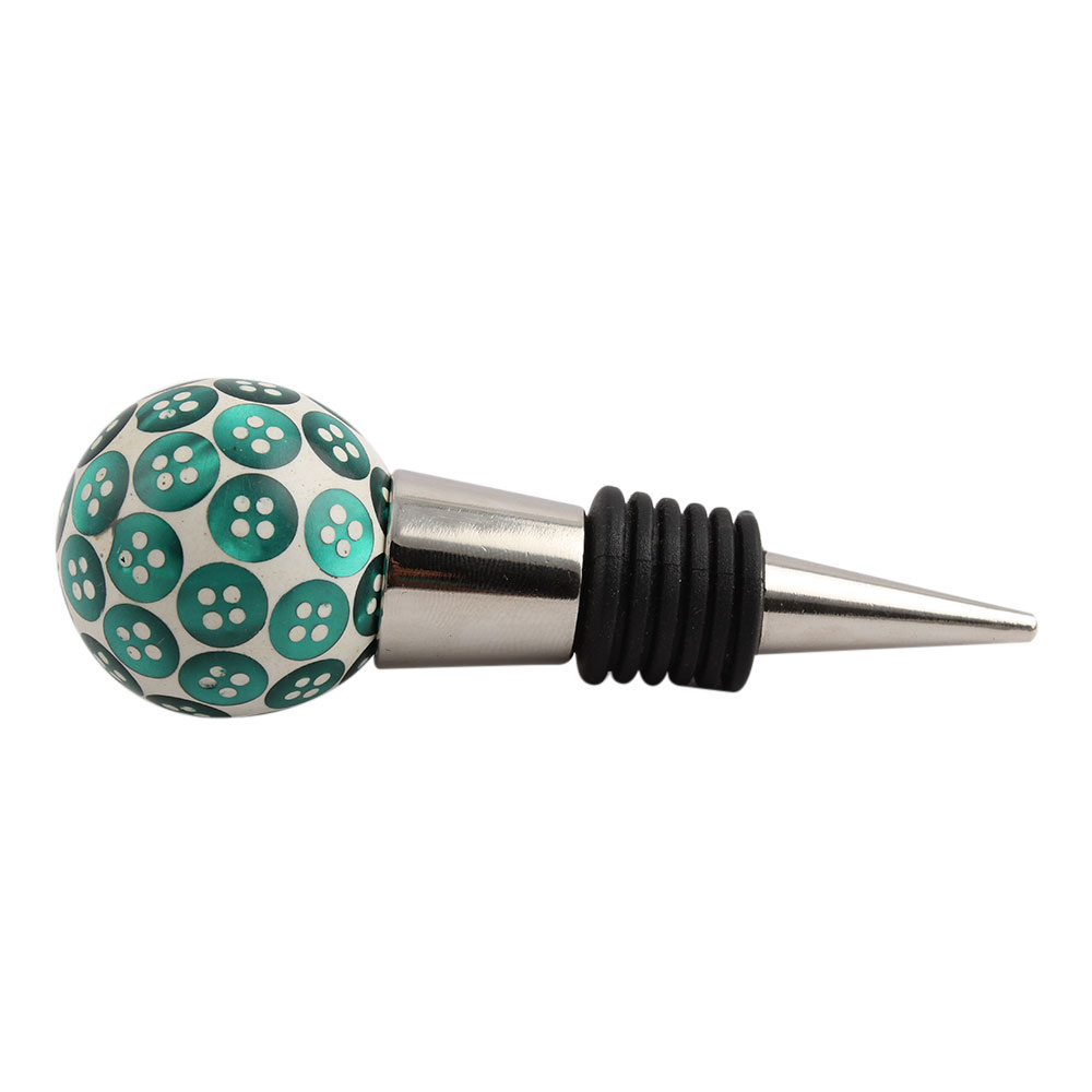 Green Button Wine Stopper.zinc alloy wine bottle stopper with attractive Jute Bag Packaging.