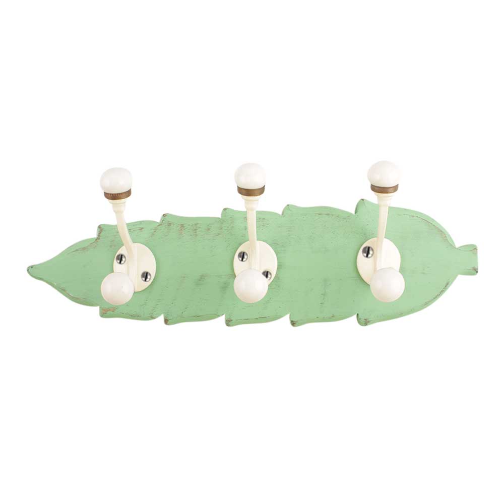 Green Cream Double Loop Ceramic Iron Wooden Hooks. A Perfect Complement to the Soft Tone of the Wood are these White Traditional Hat & Coat Hook Made of Genuine Porcelain and Brass. It can be use to Hang Jewellery, Leashes, Towels, Scarves, Light Weight Sweaters, Caps Etc.