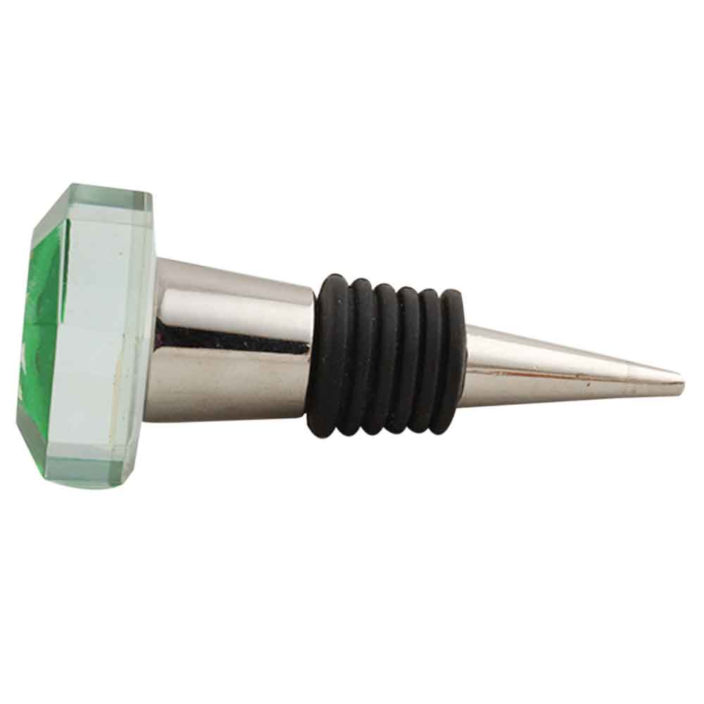 Green Flat Octagon Dresser Glass Wine Stopper Online (2). Zinc Alloy Wine Bottle Stopper with Attractive Jute Bag Packaging.