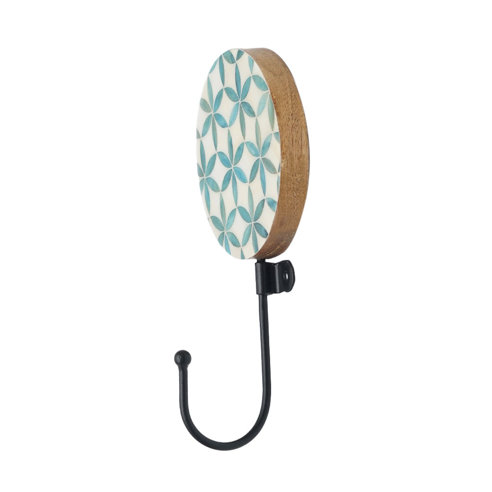 The White and Green Floral Pattern Round Wooden Resin Wall Hook is designed not just as a decorative piece, but also as a functional storage solution. The high-quality resin and wooden construction ensure that the hook is both durable and easy to install. Its subtle floral design adds a touch of freshness to your walls, while the hook is perfect for hanging coats, bags, keys, towels, or even scarves.