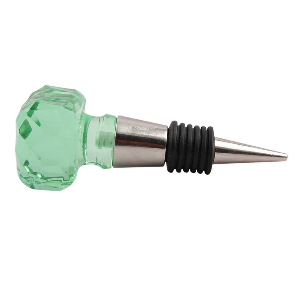 Green Glass Square Cut Wine Stopper.zinc alloy wine bottle stopper with attractive Jute Bag Packaging.