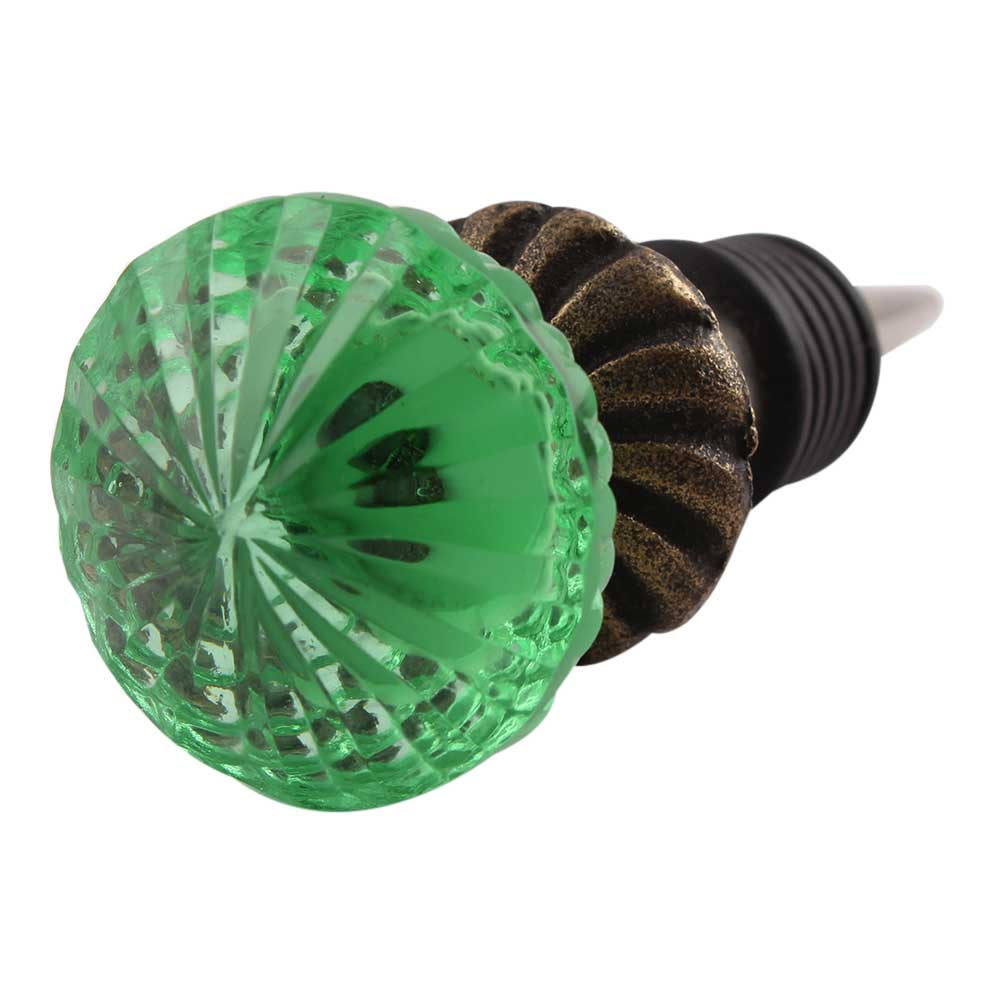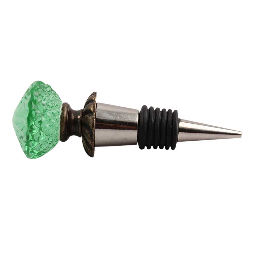 Green Glass Wine Stopper.zinc alloy wine bottle stopper with attractive Jute Bag Packaging.