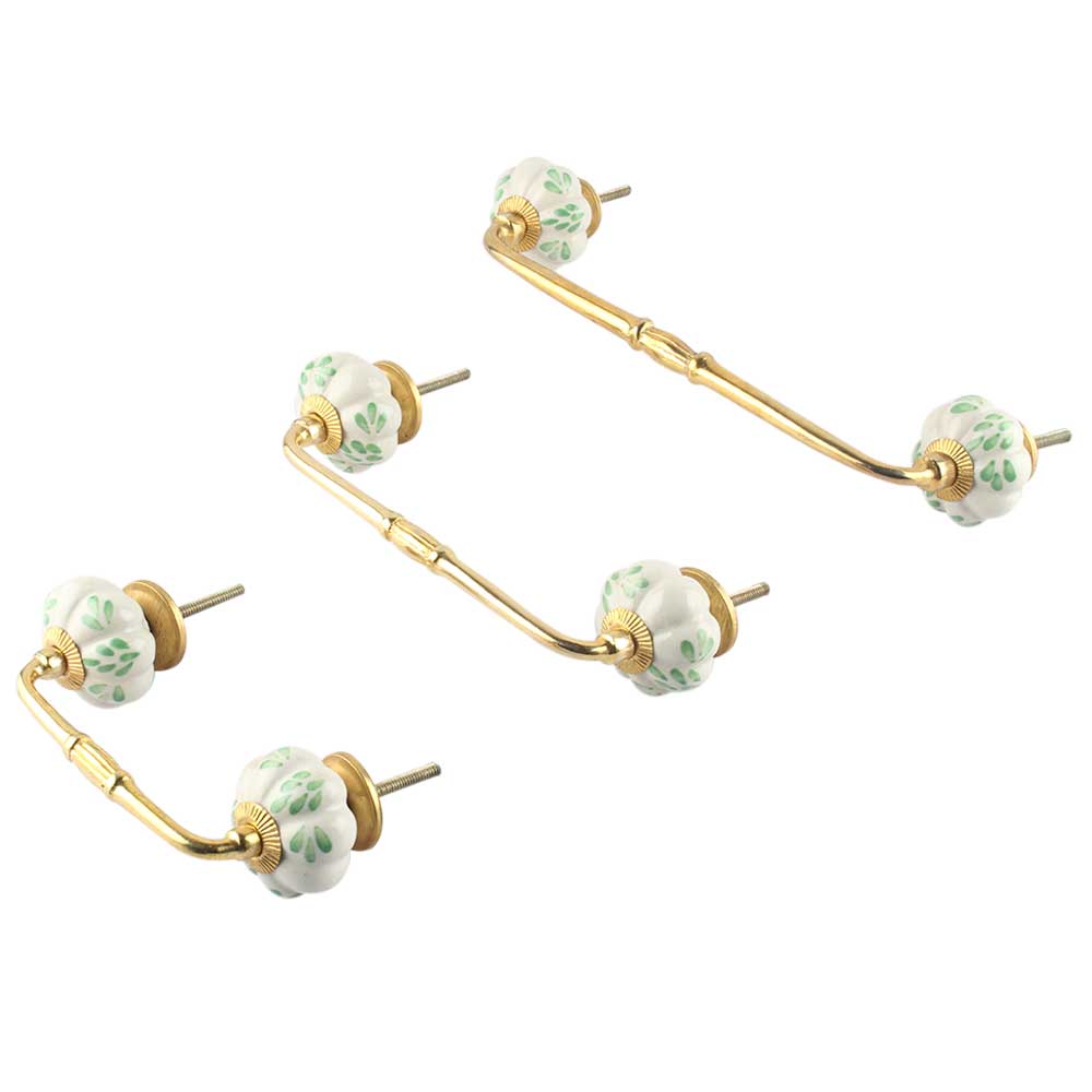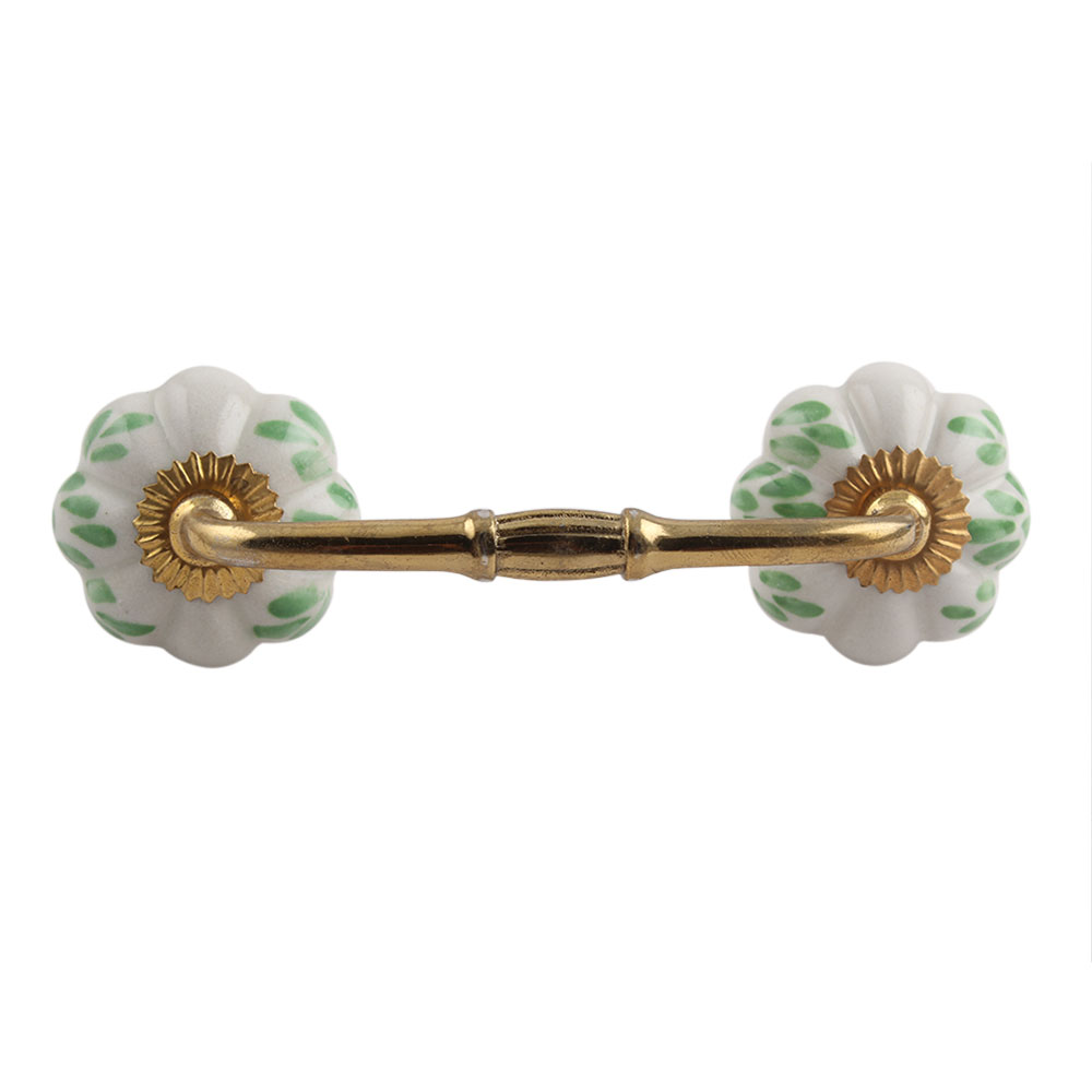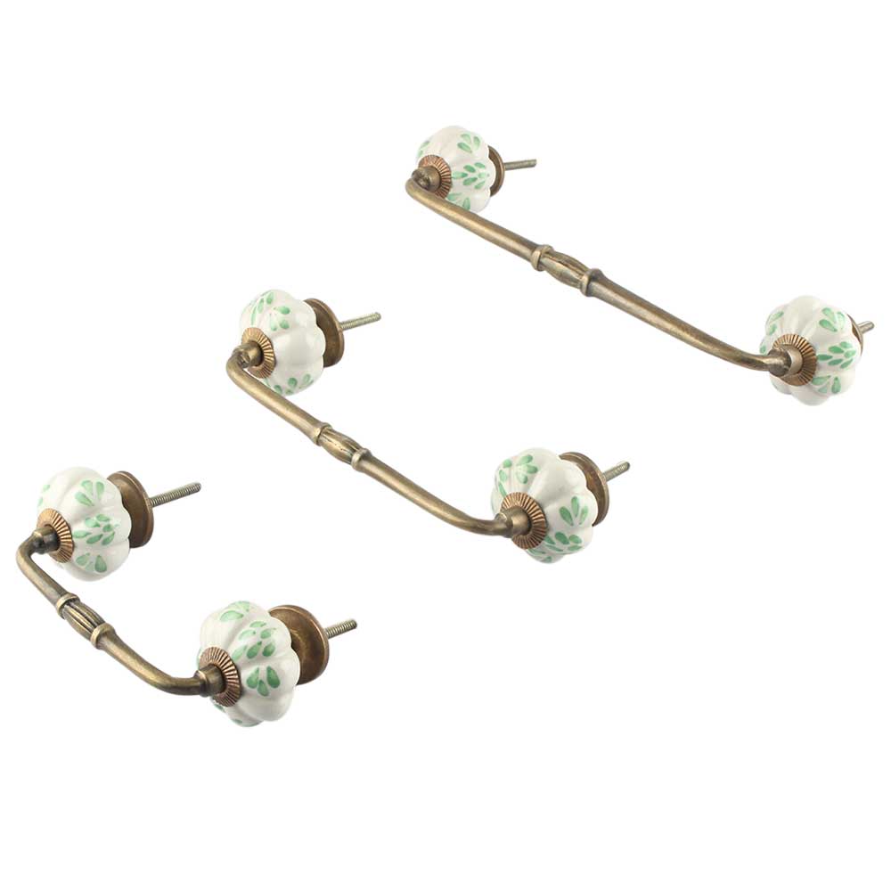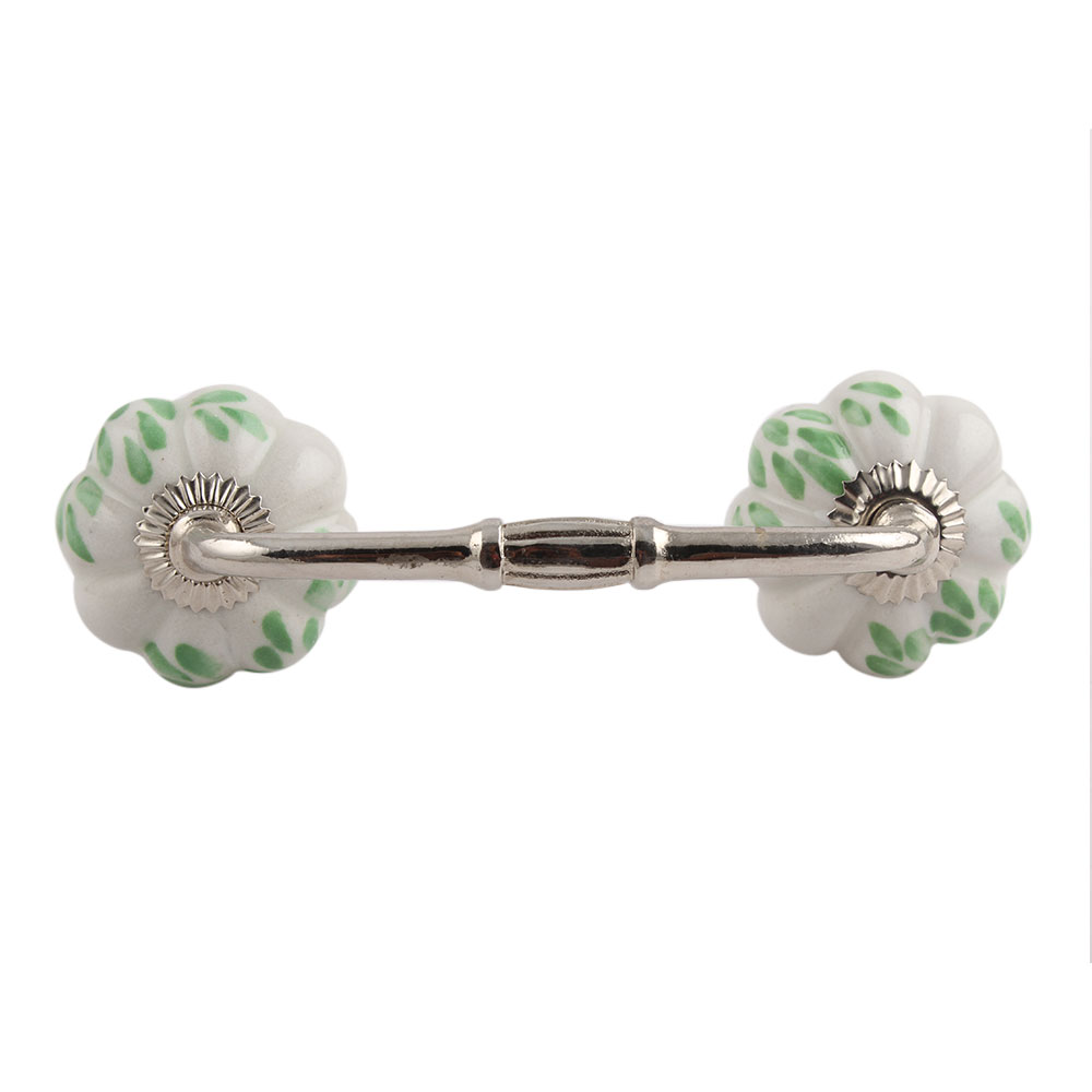 Green Leaf Ceramic Bridge Handle. Ideal for Drawer, Dresser, Cabinet, Wardrobe, Cupboard and Almirah.