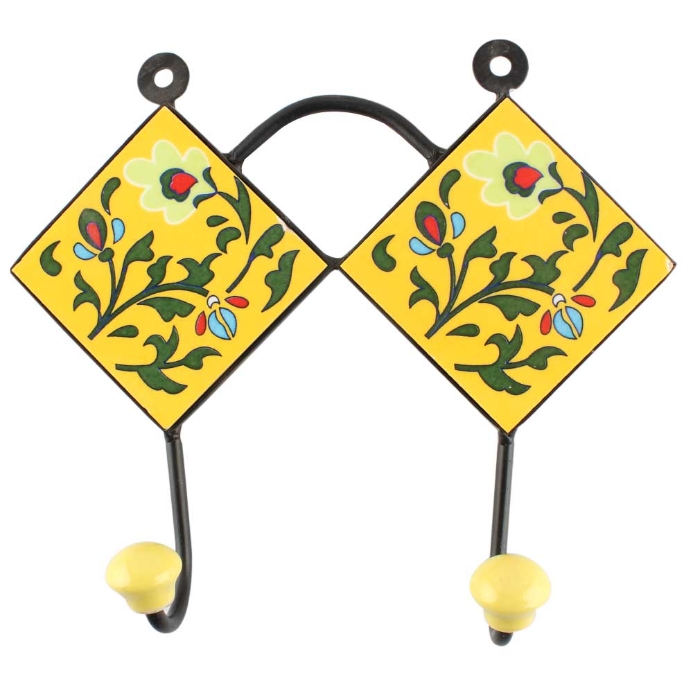Green Leaf Ceramic Tile Hook. When Put on Wall or Cabinet It is An Art in Itself. The Metal Part of this Hook is Black Powder Coated.