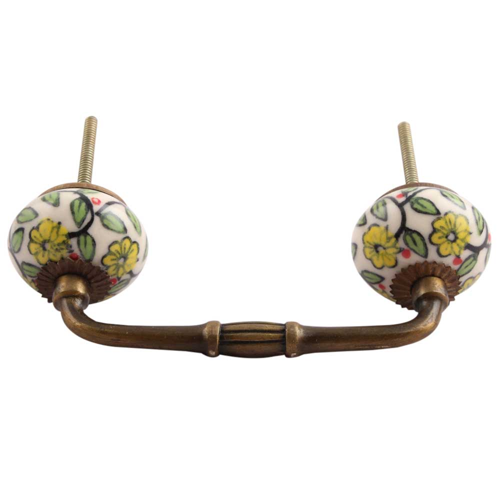 Green Leaf Floral Ceramic Bridge Handle. Ideal for Drawer, Dresser, Cabinet, Wardrobe, Cupboard and Almirah.