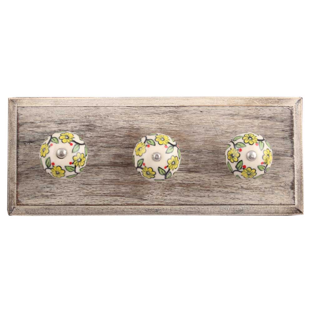 Green Leaf Floral Ceramic Wooden Hook. A Perfect Complement to the Soft Tone of the Wood are these White Traditional Hat & Coat Hook Made of Genuine Porcelain and Brass. It can be use to Hang Jewellery, Leashes, Towels, Scarves, Light Weight Sweaters, Caps Etc.