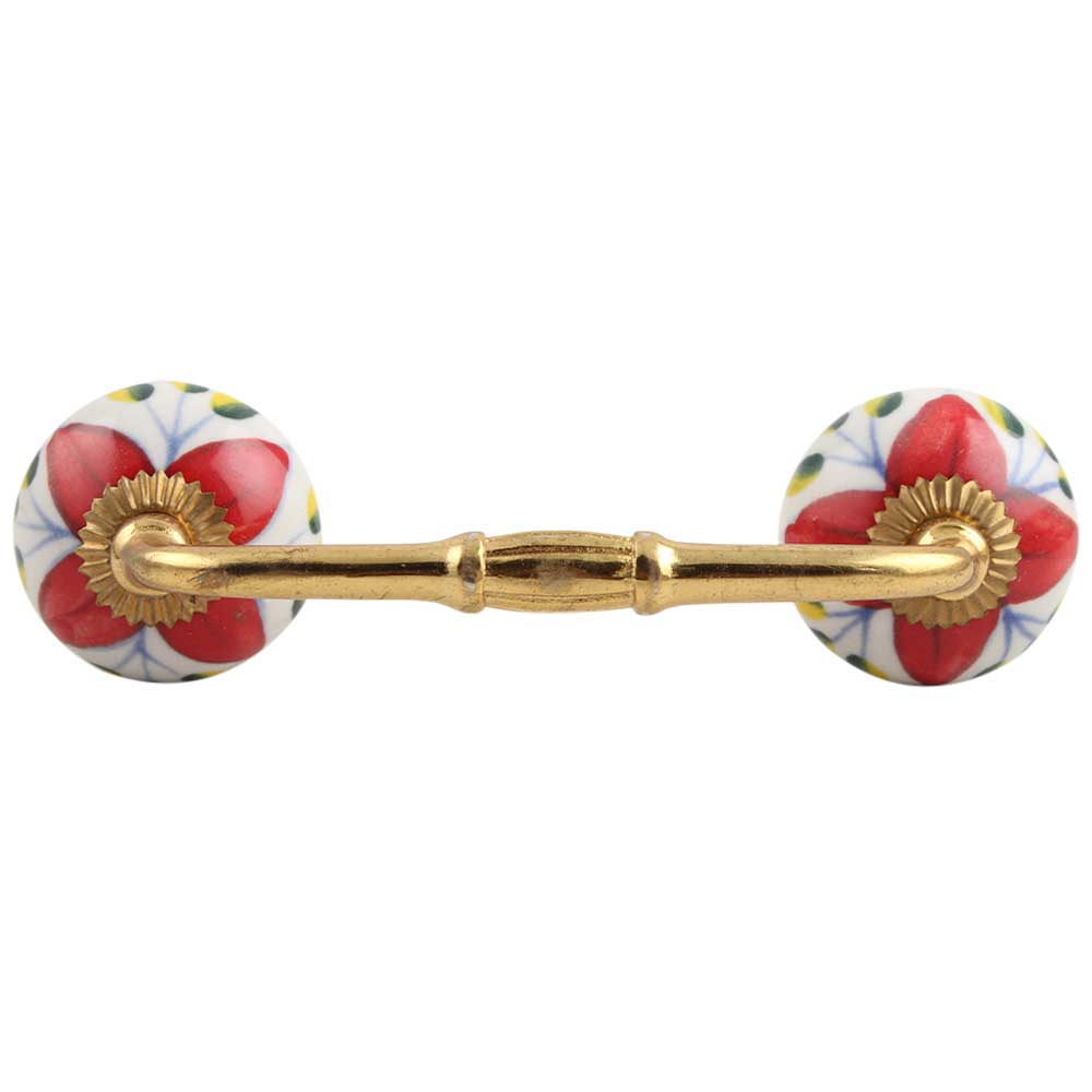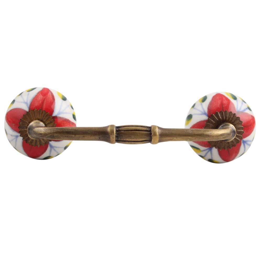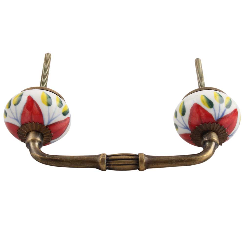 Green Leaf Flower Ceramic Bridge Handle. Ideal for Drawer, Dresser, Cabinet, Wardrobe, Cupboard and Almirah.