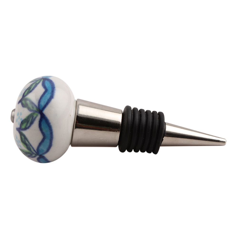 Green Leaves Ceramic Wine Stopper.zinc alloy wine bottle stopper with attractive Jute Bag Packaging.