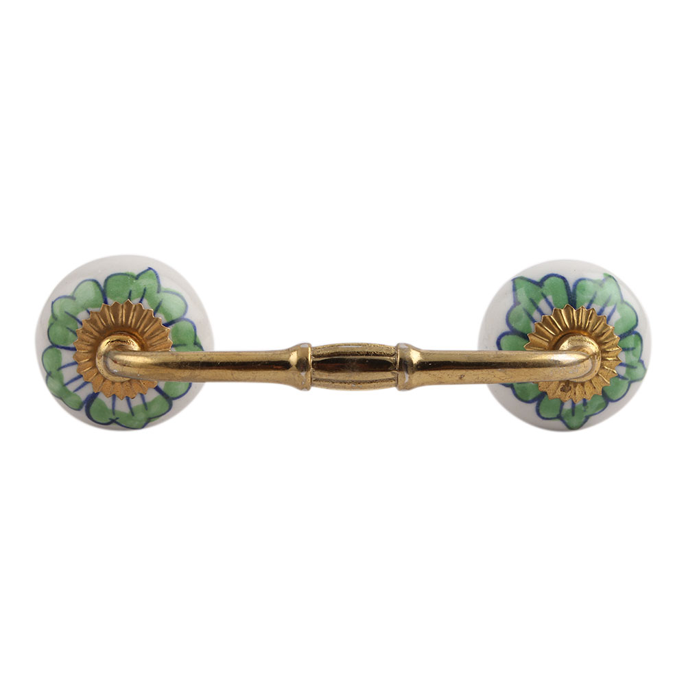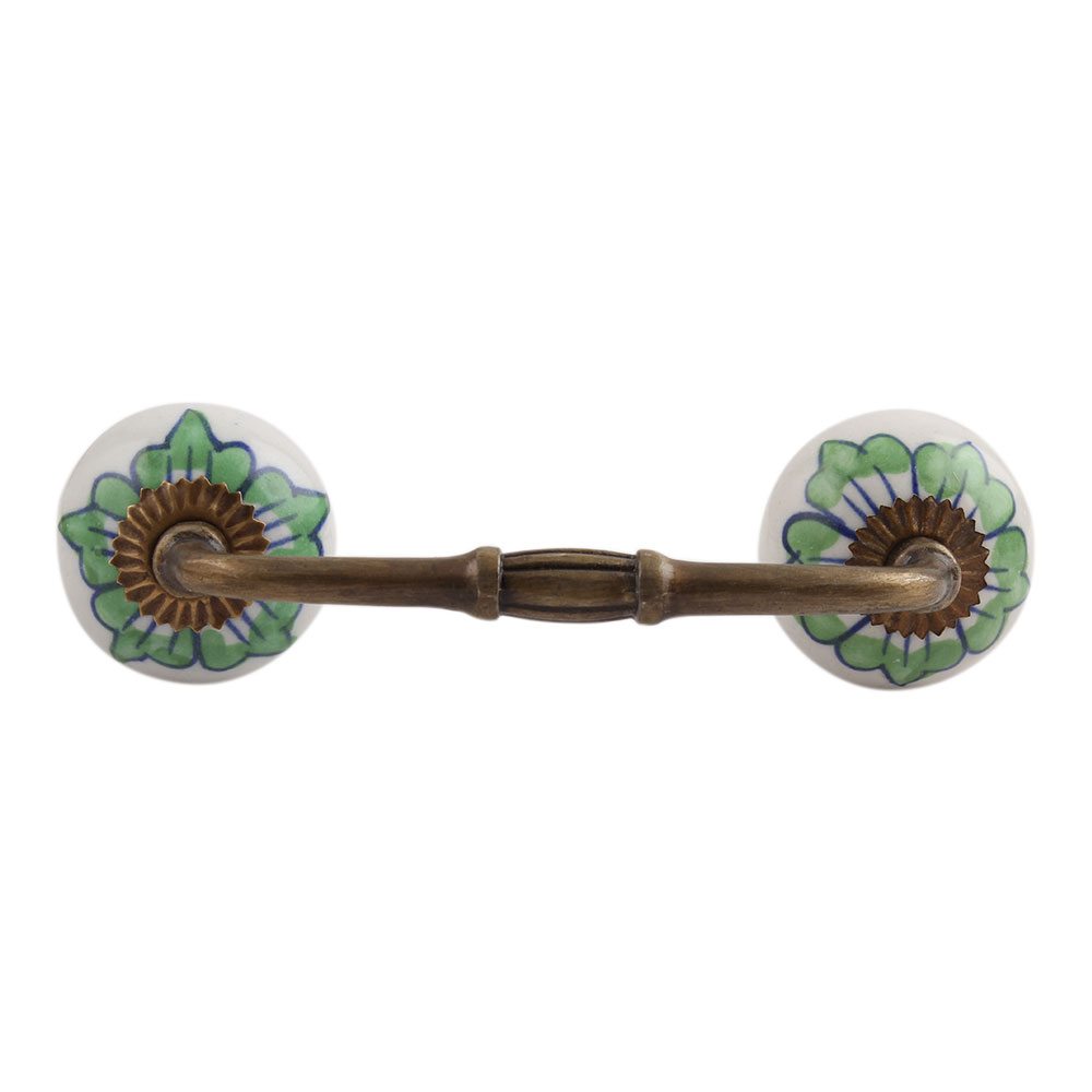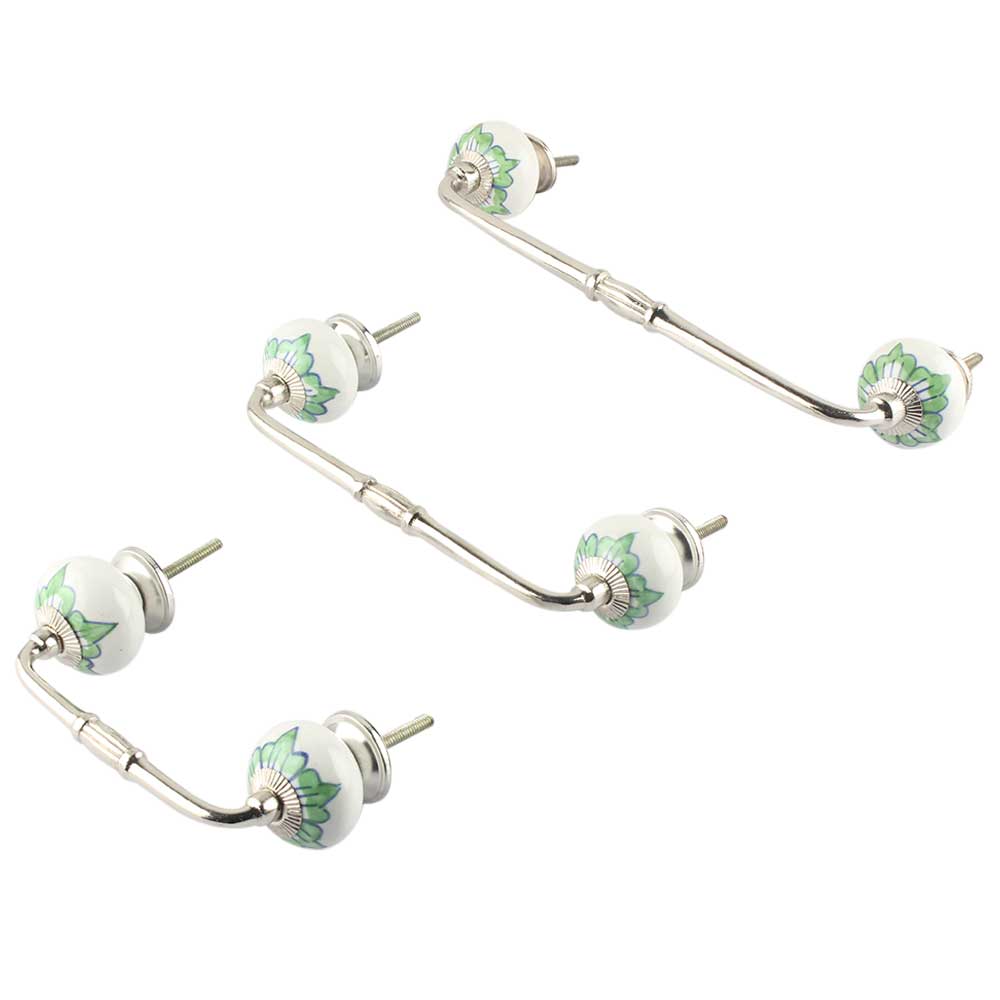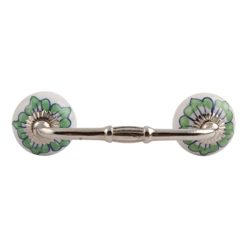 Green Lisianthus Ceramic Bridge Handle. Ideal for Drawer, Dresser, Cabinet, Wardrobe, Cupboard and Almirah.