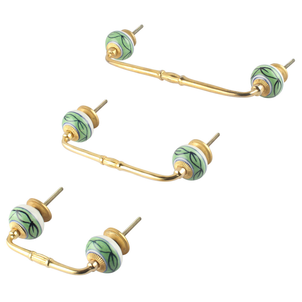 Green Loop Ceramic Bridge Handle. Ideal for Drawer, Dresser, Cabinet, Wardrobe, Cupboard and Almirah.