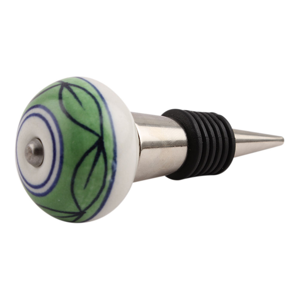 Green Loop Ceramic Wine Stopper.zinc alloy wine bottle stopper with attractive Jute Bag Packaging.