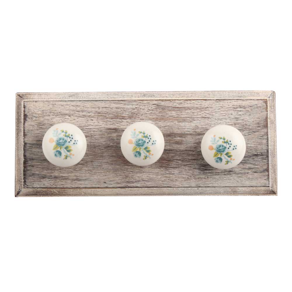 Green Marjoram Flower Ceramic Wooden Hook. A Perfect Complement to the Soft Tone of the Wood are these White Traditional Hat &Amp; Coat Hook Made of Genuine Porcelain and Brass. It can be use to Hang Jewellery, Leashes, Towels, Scarves, Light Weight Sweaters, Caps Etc.