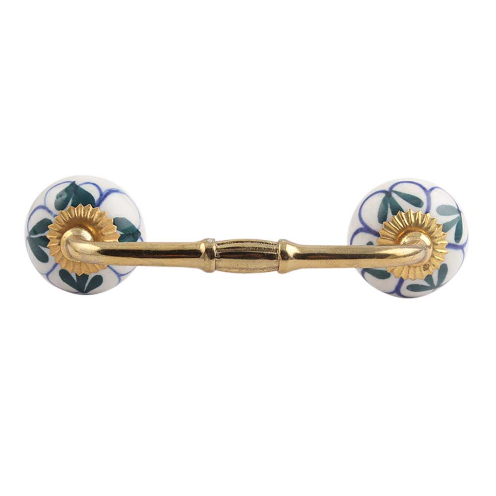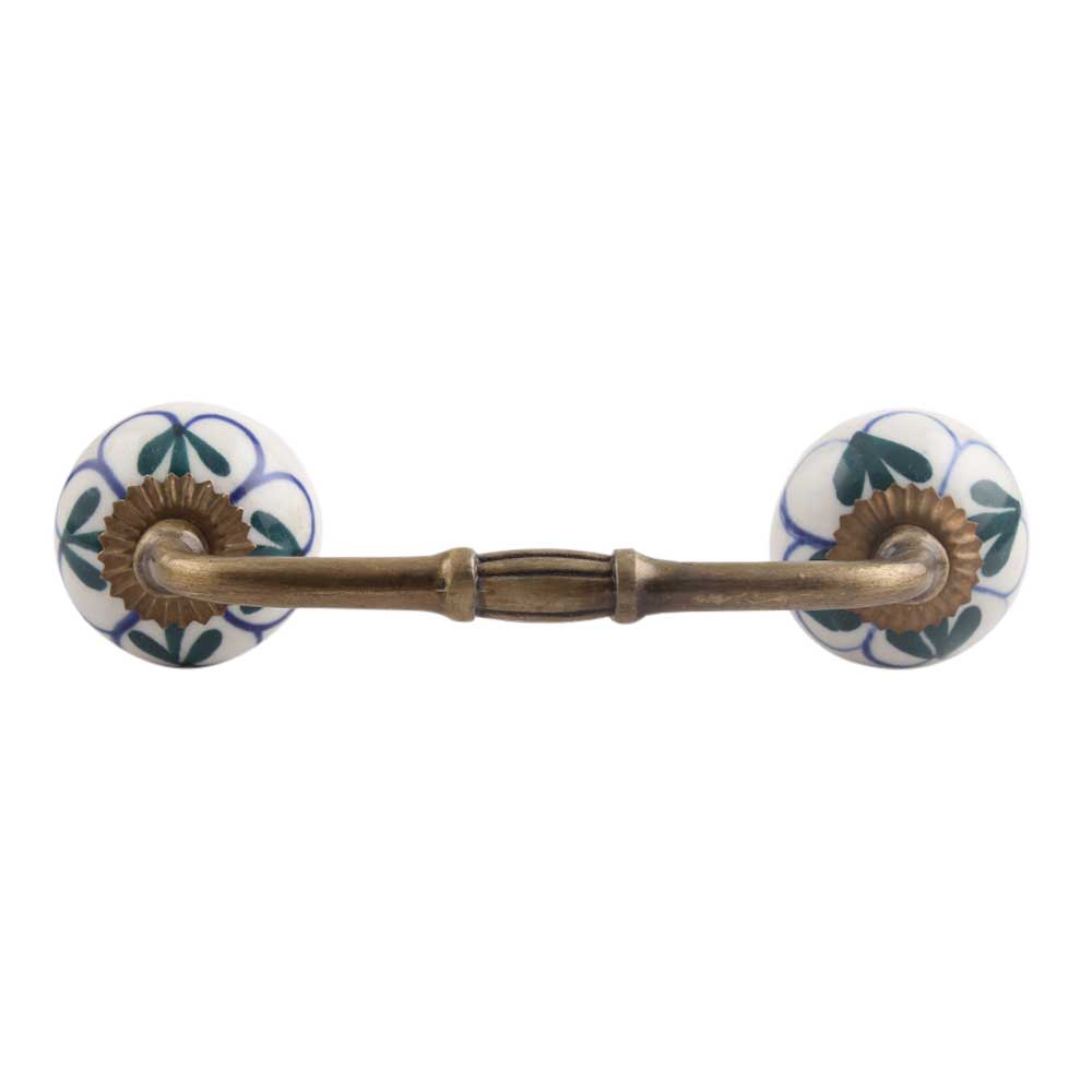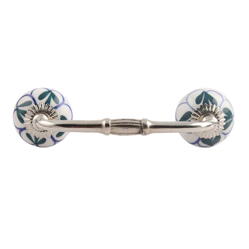 Green Shamrock Ceramic Bridge Handle. Ideal for Drawer, Dresser, Cabinet, Wardrobe, Cupboard and Almirah.