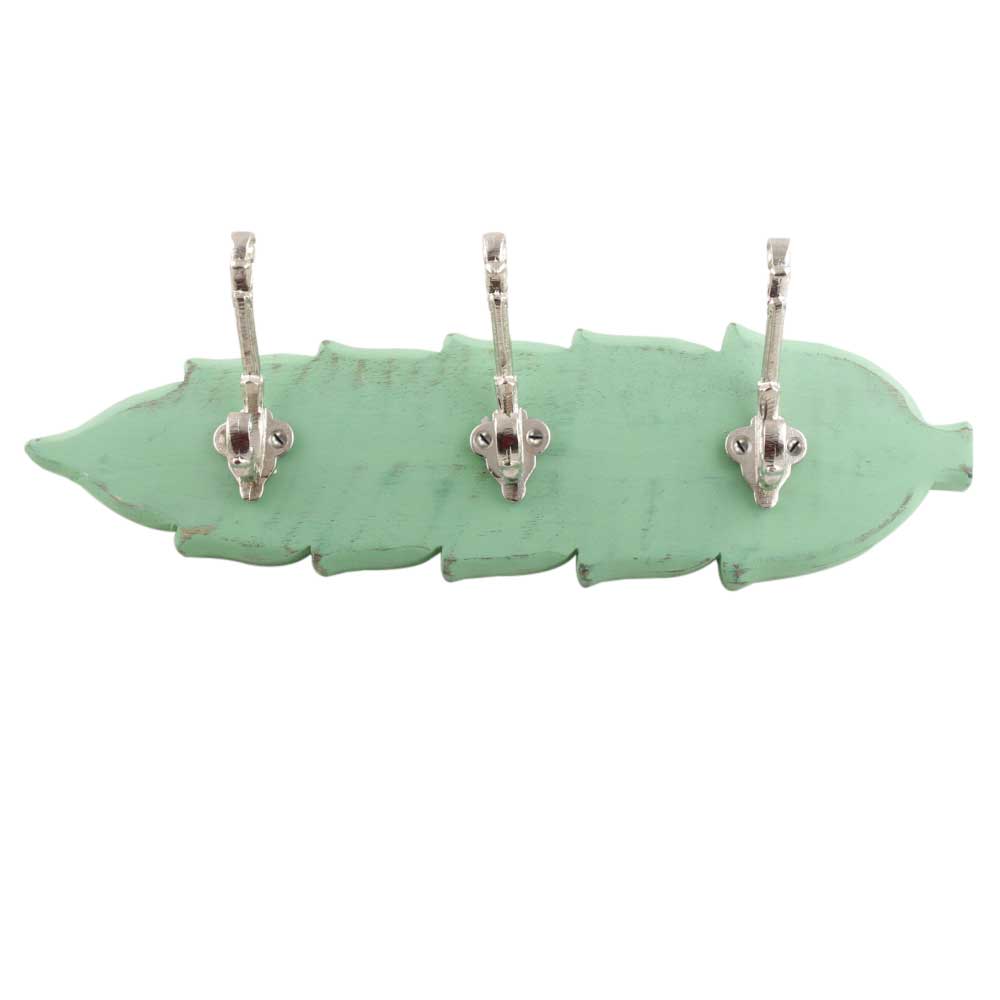 Green And Silver Small Wall Wooden Iron Hooks. A Perfect Complement to the Soft Tone of the Wood are these White Traditional Hat & Coat Hook Made of Genuine Porcelain and Brass. It can be use to Hang Jewellery, Leashes, Towels, Scarves, Light Weight Sweaters, Caps Etc.