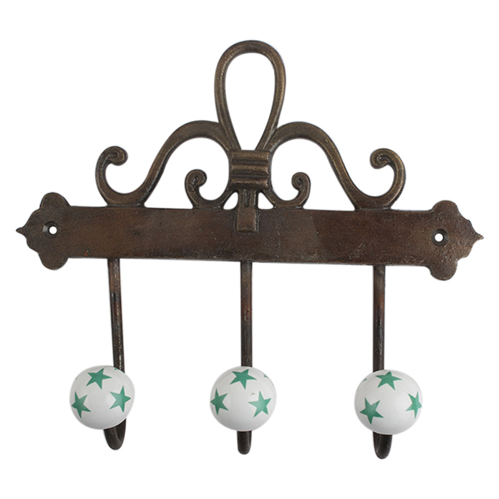 Green Star Ceramic Iron Hook. A Perfect Complement to the Soft Tone of the Wood are these White Traditional Hat &Amp; Coat Hook Made of Genuine Porcelain and Brass. It can be use to Hang Jewellery, Leashes, Towels, Scarves, Light Weight Sweaters, Caps Etc.