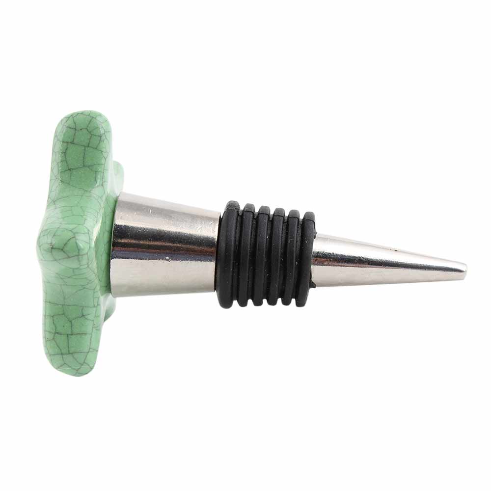 Green Star Crackle Ceramic Wine Bottle Stopper. Zinc Alloy Wine Bottle Stopper with Attractive Jute Bag Packaging.