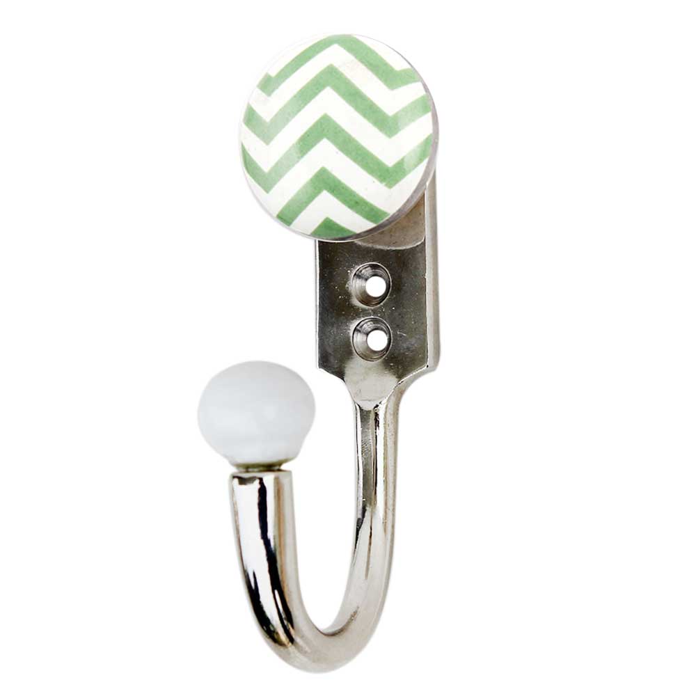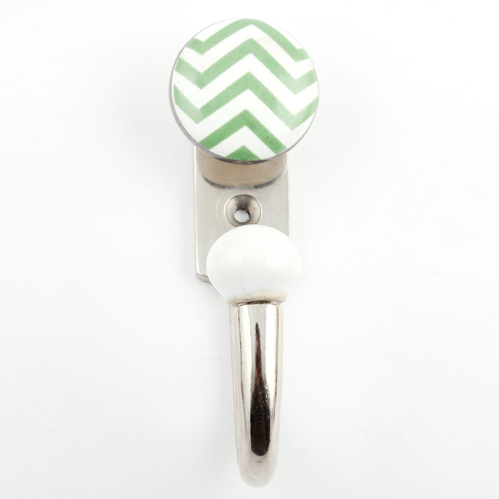 Green Striped Ceramic Hook. When Put on Wall or Cabinet It is An Art in Itself. This Hook is Strong Enough to Hold Your Keys, Tea Cups, Hand Towels, Cloths Etc.