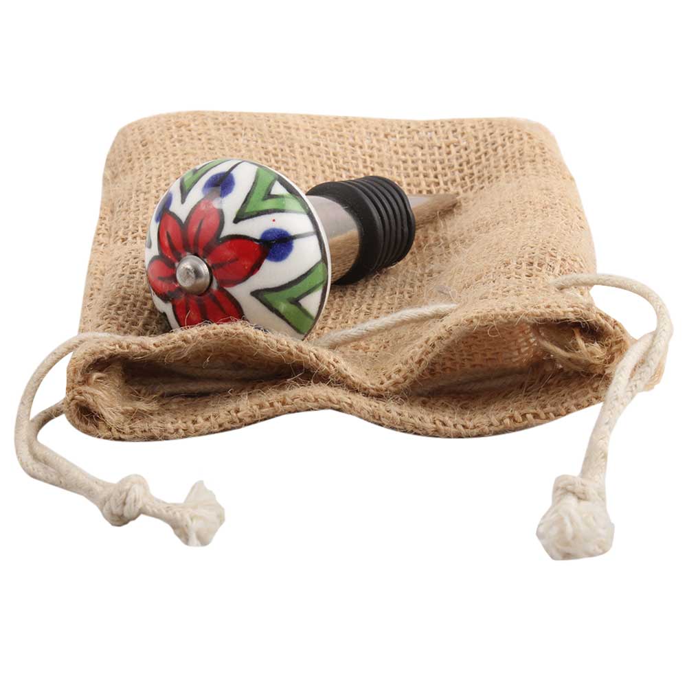 Green Triangle Ceramic Wine Stopper.zinc alloy wine bottle stopper with attractive Jute Bag Packaging.