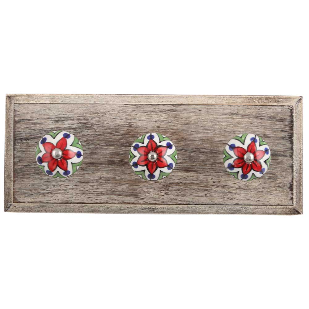 Green Triangle Ceramic Wooden Hook. A Perfect Complement to the Soft Tone of the Wood are these White Traditional Hat & Coat Hook Made of Genuine Porcelain and Brass. It can be use to Hang Jewellery, Leashes, Towels, Scarves, Light Weight Sweaters, Caps Etc.