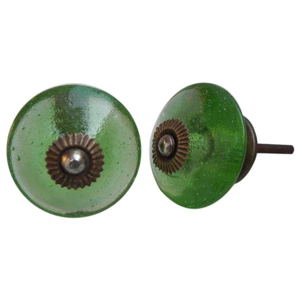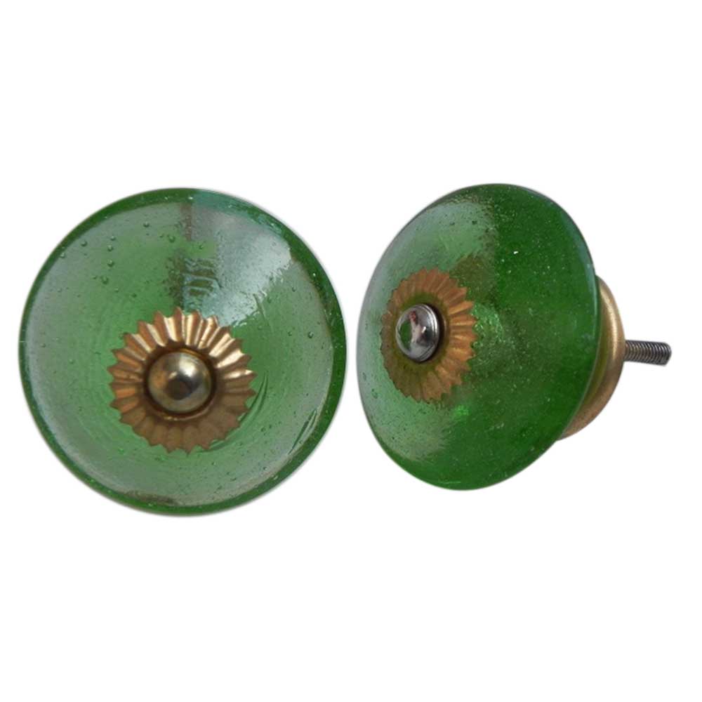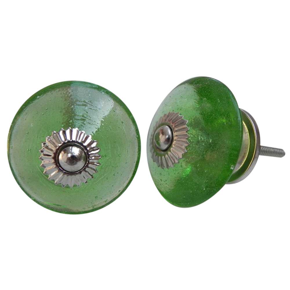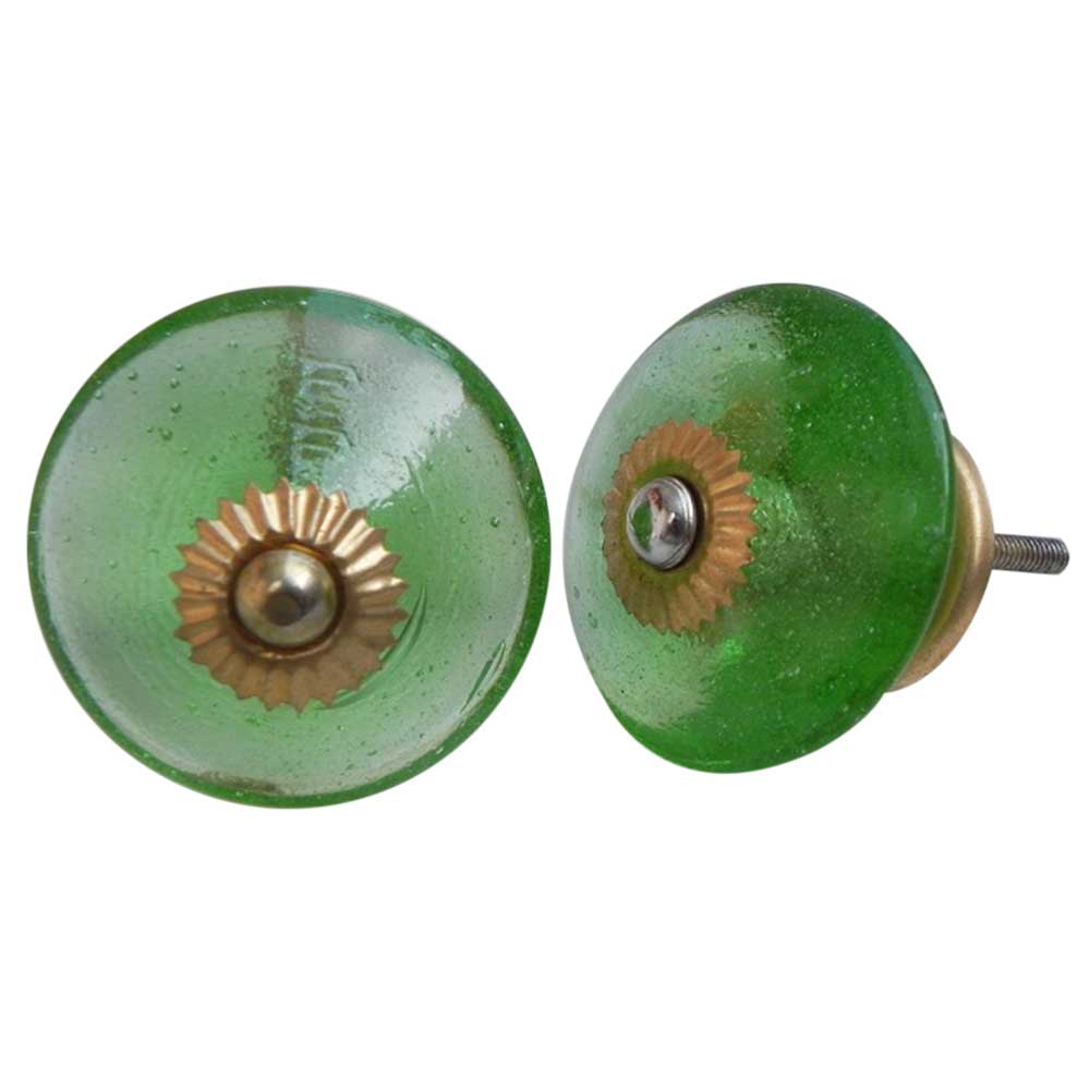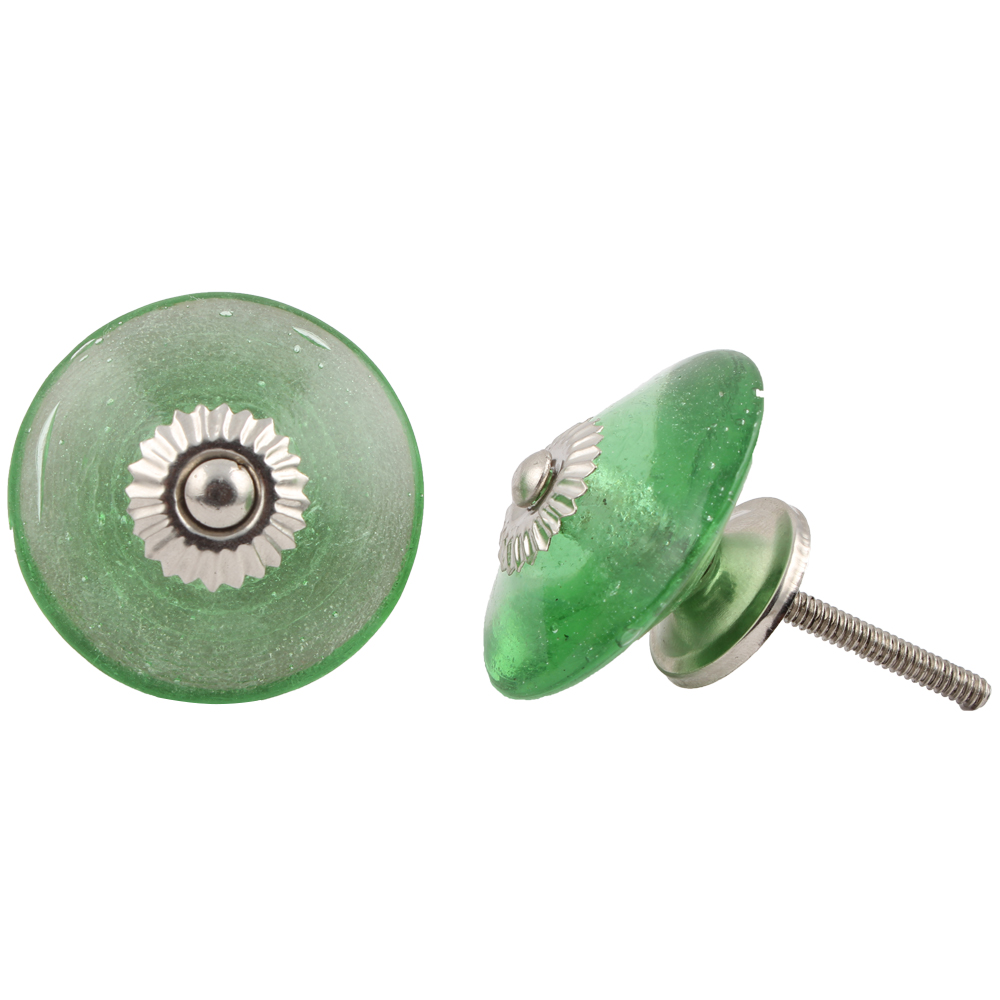 Green Wheel Glass Knobs. Ideal for Drawer, Dresser, Cabinet, Wardrobe, Cupboard and Almirah.