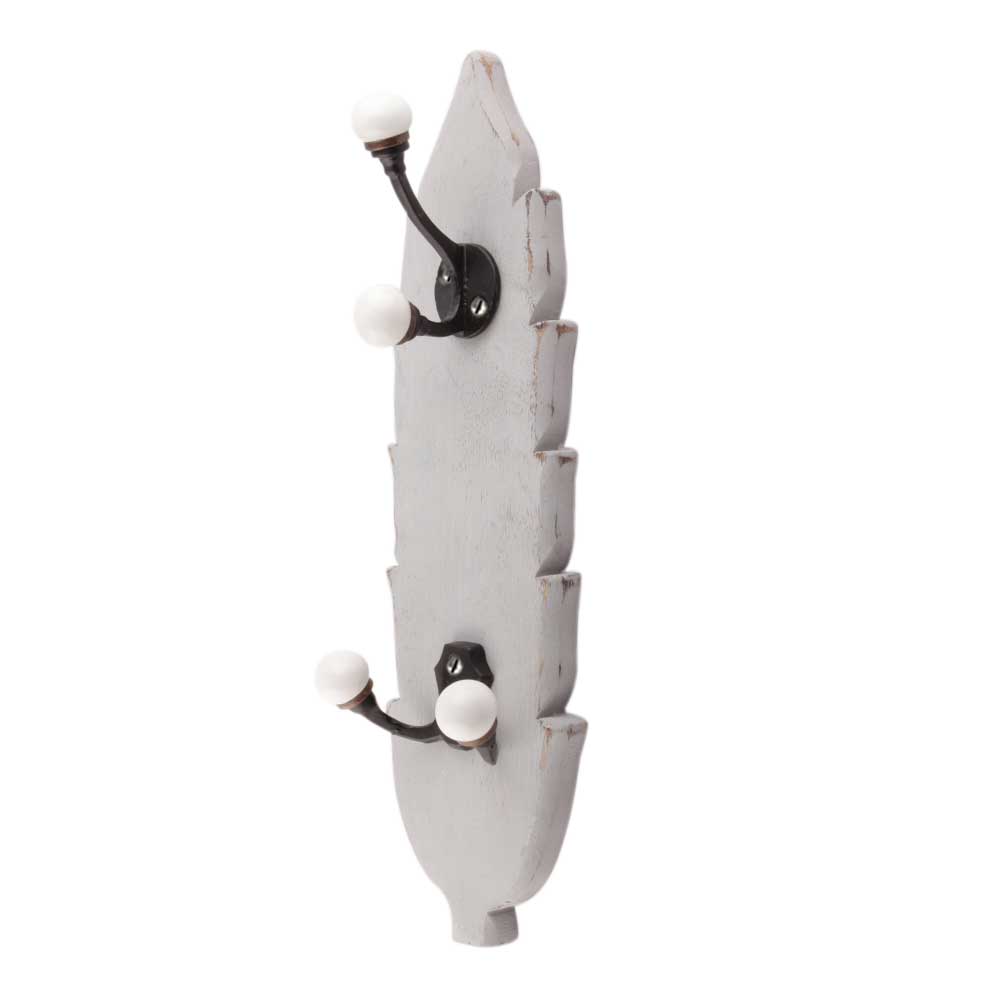 Grey And Black Double Loop Ceramic Iron Wooden Hooks. A Perfect Complement to the Soft Tone of the Wood are these White Traditional Hat and Coat Hook Made of Genuine Porcelain and Brass. It can be used to Hang Jewelry, Leashes, Towels, Scarves, Light Weight Sweaters, Caps etc.