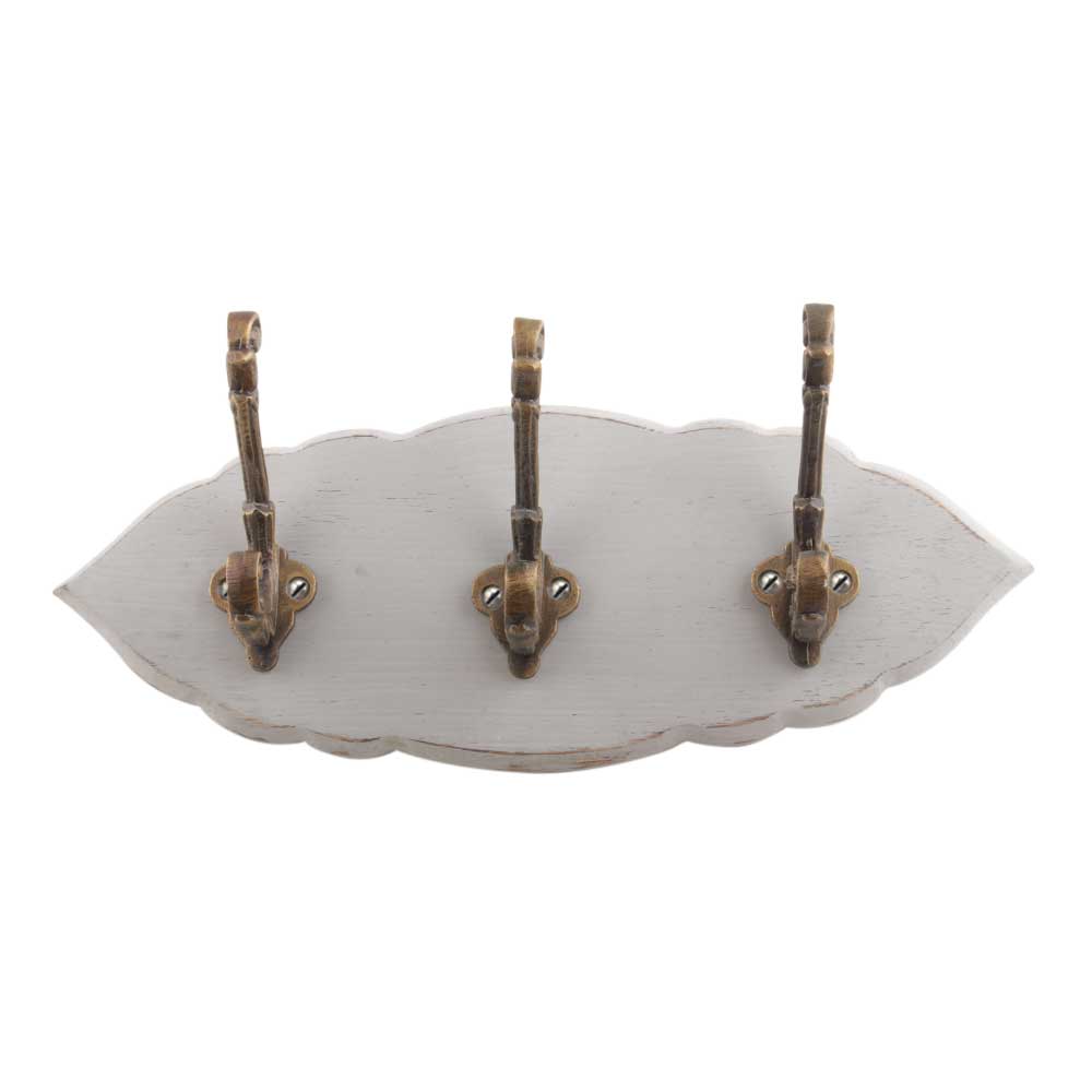 Grey Antique Small Wall Wooden Iron Hooks. A Perfect Complement to the Soft Tone of the Wood are these White Traditional Hat & Coat Hook Made of Genuine Porcelain and Brass. It can be use to Hang Jewellery, Leashes, Towels, Scarves, Light Weight Sweaters, Caps Etc.