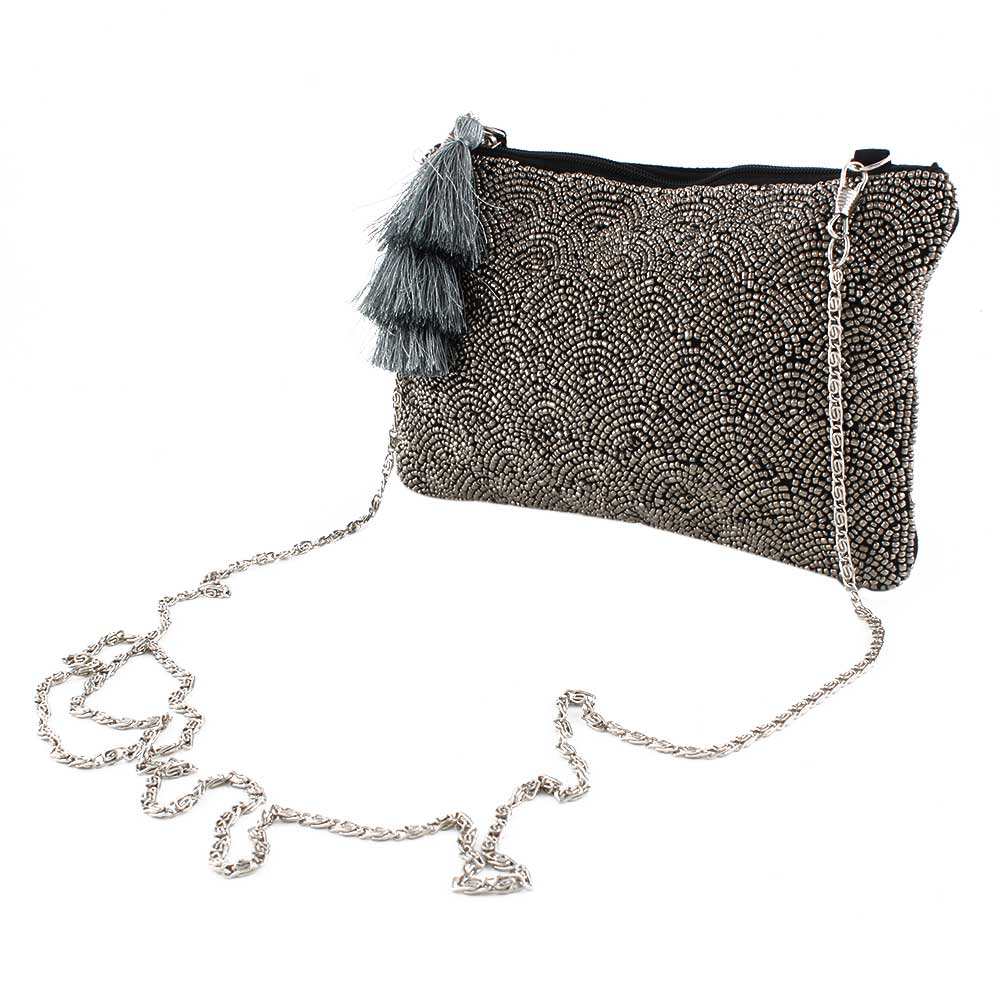 This is a super cute little bag that can be used casually or dressy with detachable chain strap. Zippered main closure and inner compartment .Just enough room for my cell, lip gloss, and wallet.