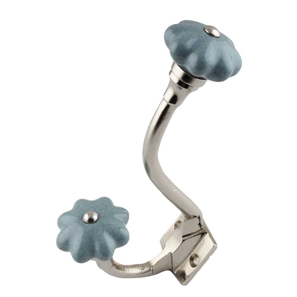 Crafted with care and designed for modern living, the Grey Crackle Melon Ceramic Silver Iron Hook is where style meets utility. Featuring a unique melon-shaped ceramic top in a soft grey crackle finish, this hook is both decorative and durable. Mounted on a solid silver-toned iron base, it brings refined texture and timeless color to your walls—perfect for enhancing everyday spaces with quiet sophistication.