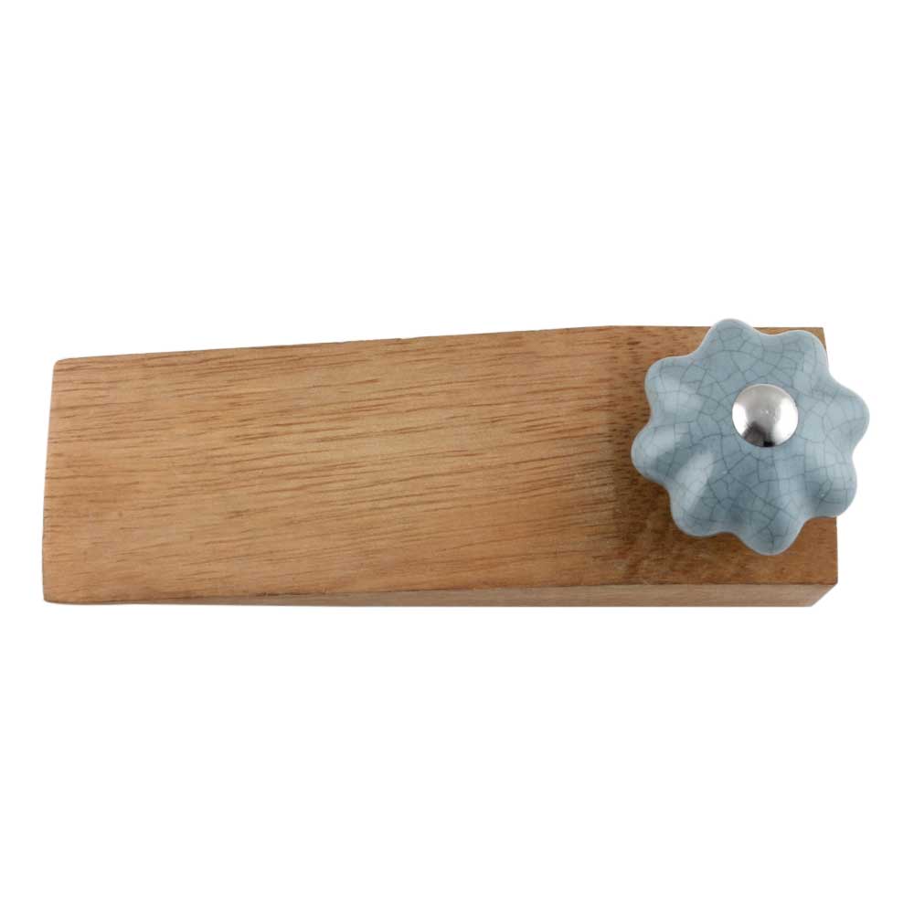 Handmade Ceramic and Wooden Door Stopper.Wooden Door Stopper with a Ceramic Knob to Carry it Easily. This Wooden Door Stopper has Glue Dots under it to Ensure that it does not Slip. It is Handmade by the Craftsmen of India and this Innovative Door Stopper won't Disappoint You.