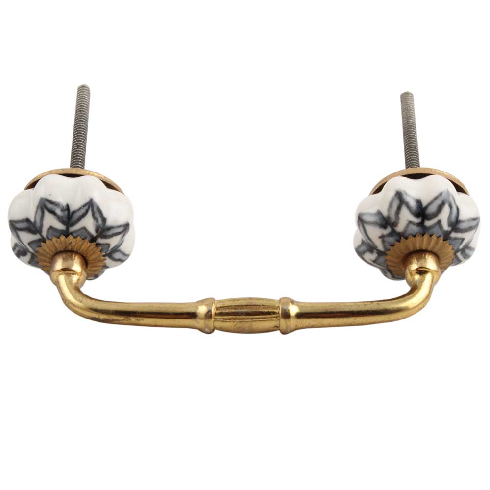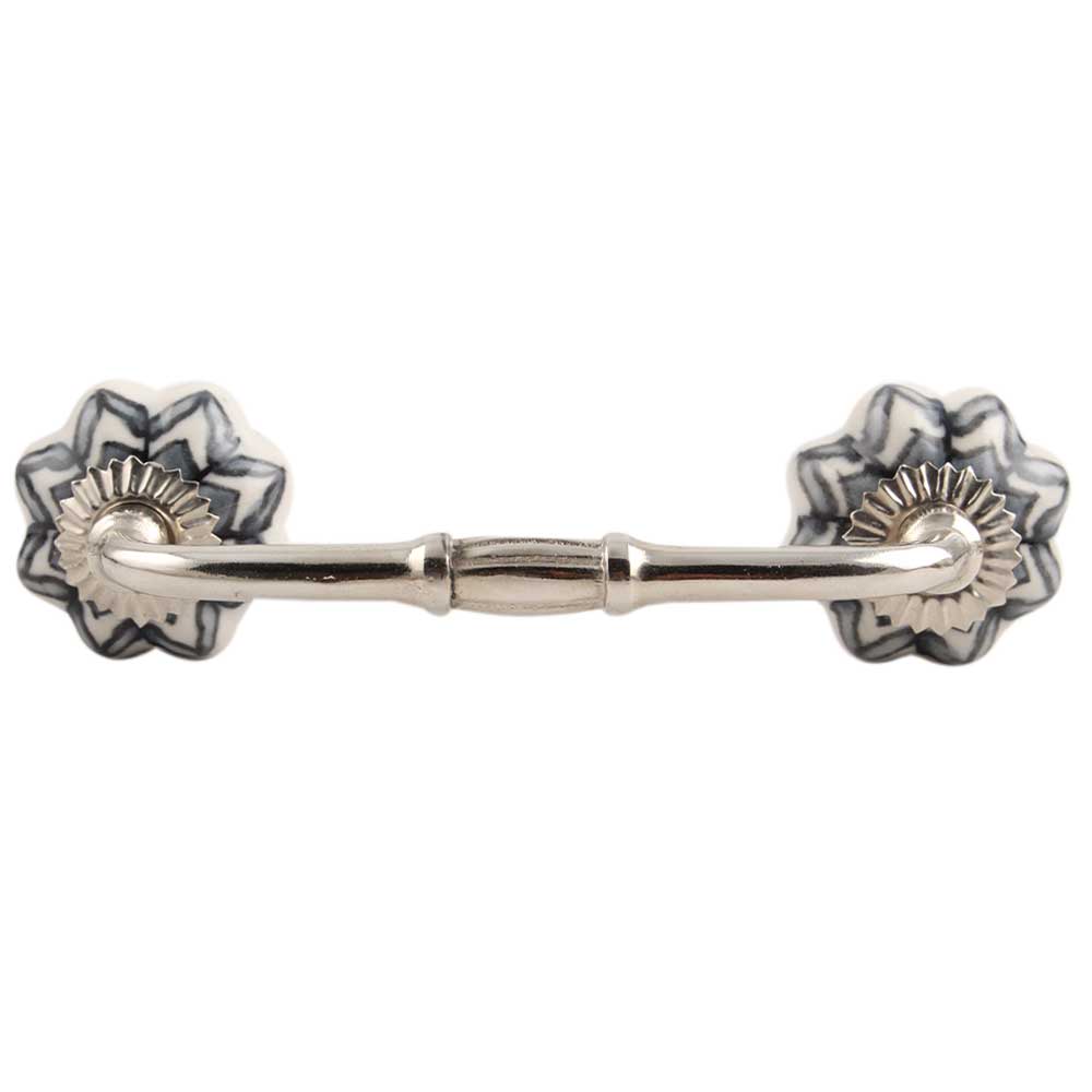 Grey Dahlia Medium Ceramic Bridge Handle. Ideal for Drawer, Dresser, Cabinet, Wardrobe, Cupboard and Almirah.