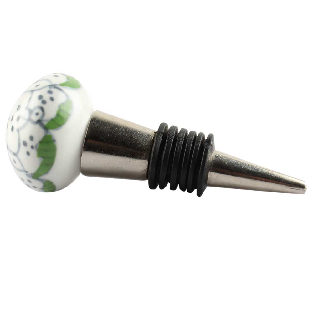 Grey Dotted Ceramic Floral Wine Stopper. Zinc Alloy Wine Bottle Stopper with Attractive Jute Bag Packaging.