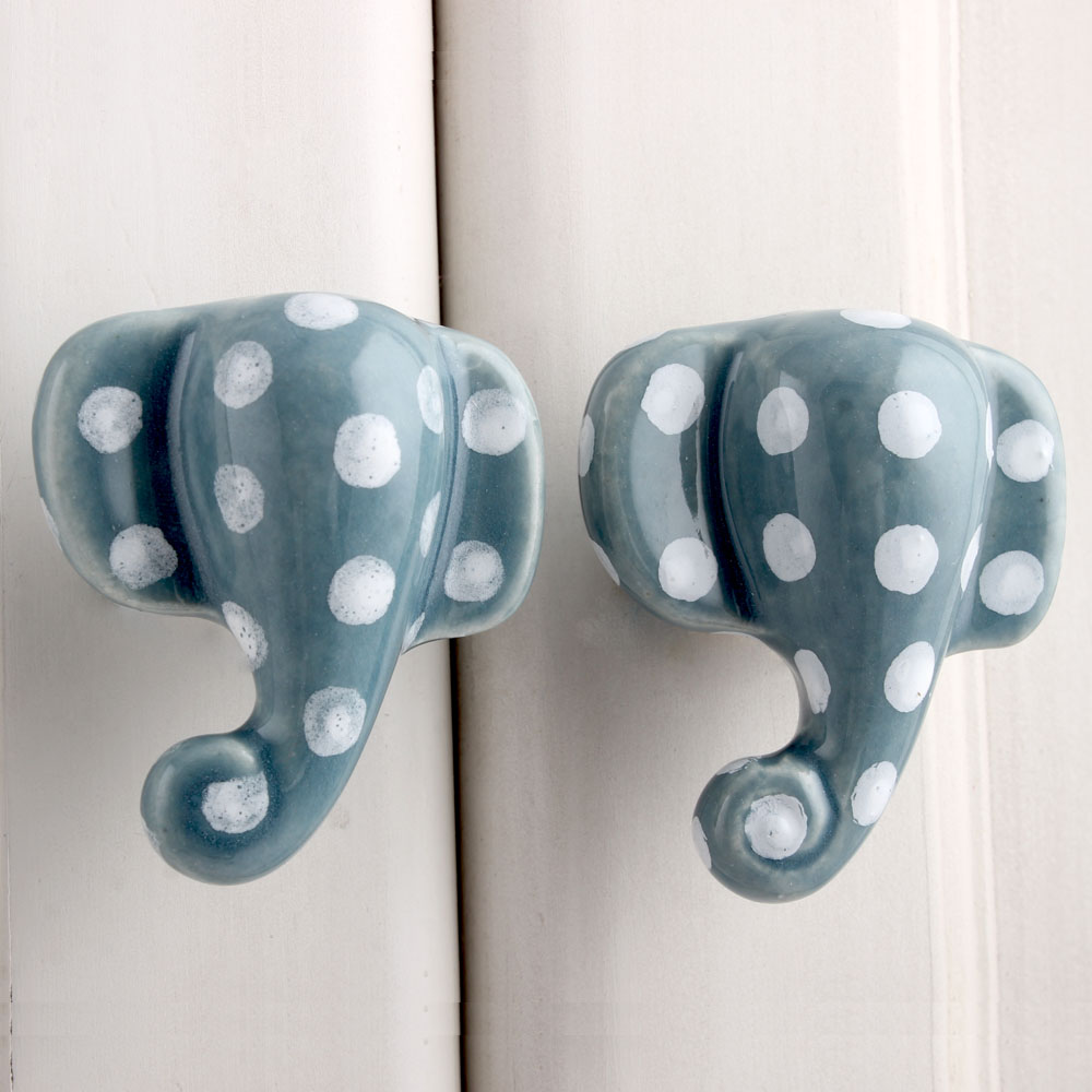 Update your home decor by adding this unique grey elephant polka knob to your cabinets and drawers. The simple addition of hardware knob can revitalize the look and feel of an entire room. Easy to install and totally rust free.