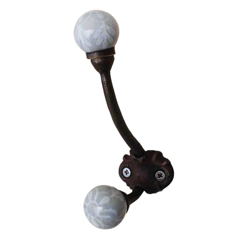 Grey Floral Hook Iron Hook-EHG-03.when put on wall or cabinet it gives a sturdy look. This hook is strong enough to hold your cloths, keys, tea cups, coffee mugs, hand towels etc.