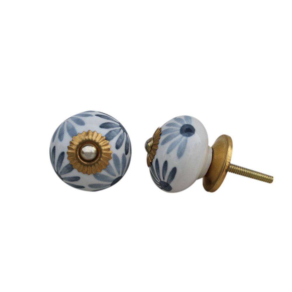 Grey Flower ceramic knob. Ideal for kitchen cabinets, kitchen drawers, dining room, bed room, chest drawers, dressing tables, almirah
