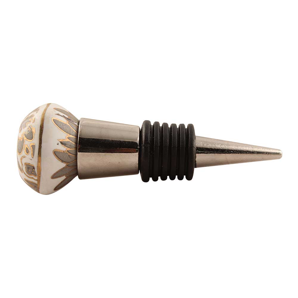 Grey Hexagon Small Ceramic Wine Stopper. Zinc Alloy Wine Bottle Stopper with Attractive Jute Bag Packaging.