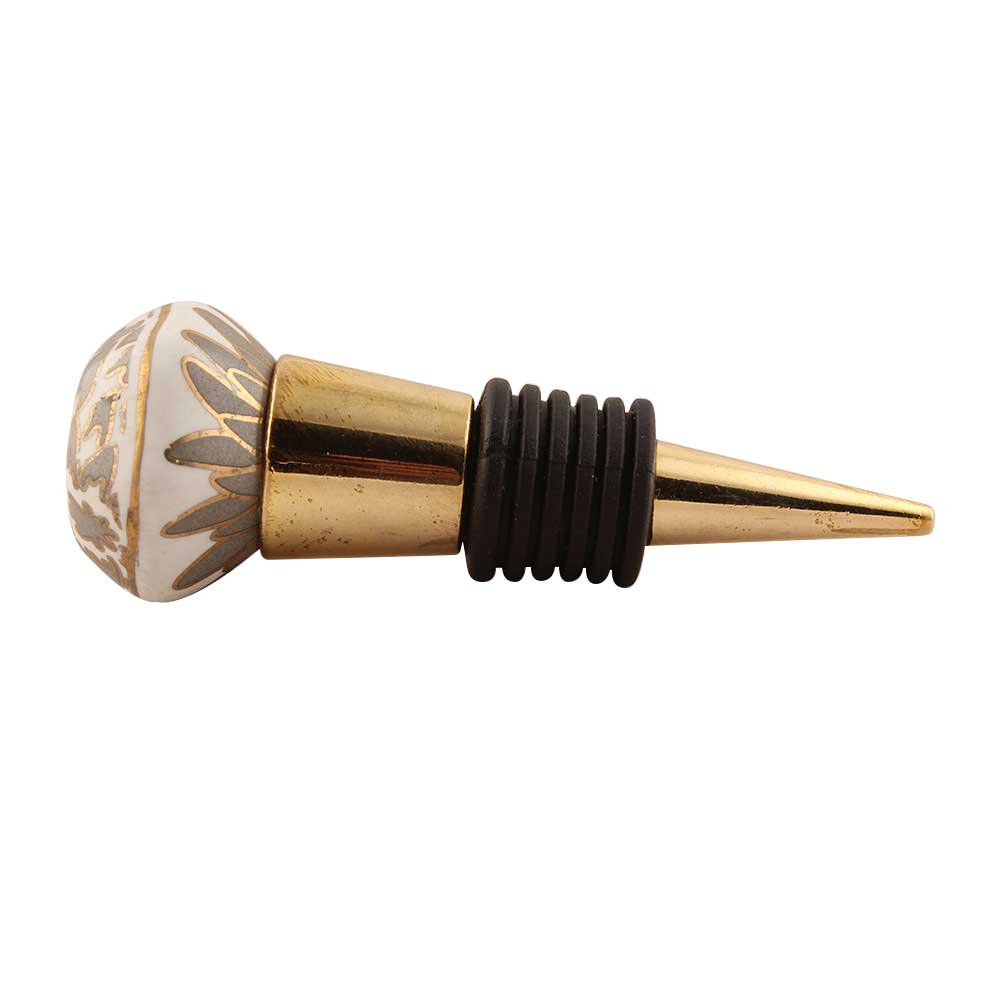 Grey Hexagon Small Ceramic Wine Stopper in Golden Fitting. Zinc Alloy Wine Bottle Stopper with Attractive Jute Bag Packaging.