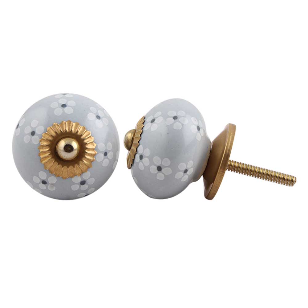 Grey Painted Floral Knobkitchen drawers, dining room, bed room, chest drawers, dressing tables, almirahs, etc.