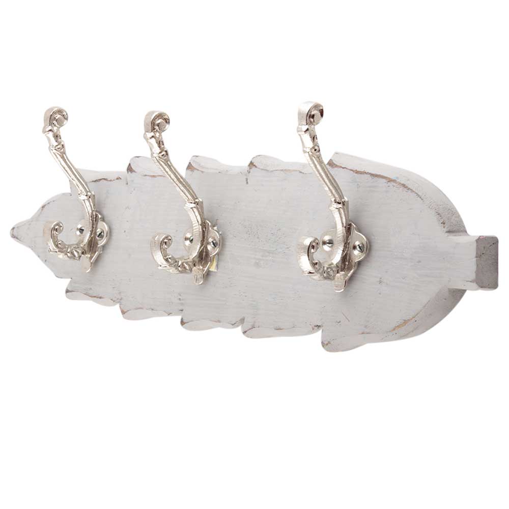 Grey And Silver Small Wall Wooden Iron Hooks. A Perfect Complement to the Soft Tone of the Wood are these White Traditional Hat & Coat Hook Made of Genuine Porcelain and Brass. It can be use to Hang Jewellery, Leashes, Towels, Scarves, Light Weight Sweaters, Caps Etc.